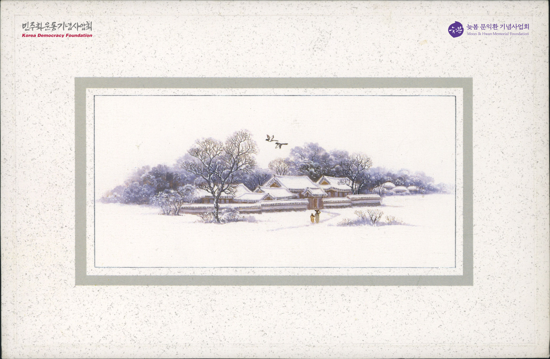 - 설훈이 '성탄과 새해를 맞이하여 만복이 깃드시길 기원합니다.'라는 내용을 적어 보낸 카드. 눈 내린 한옥 풍경 그림이 있음