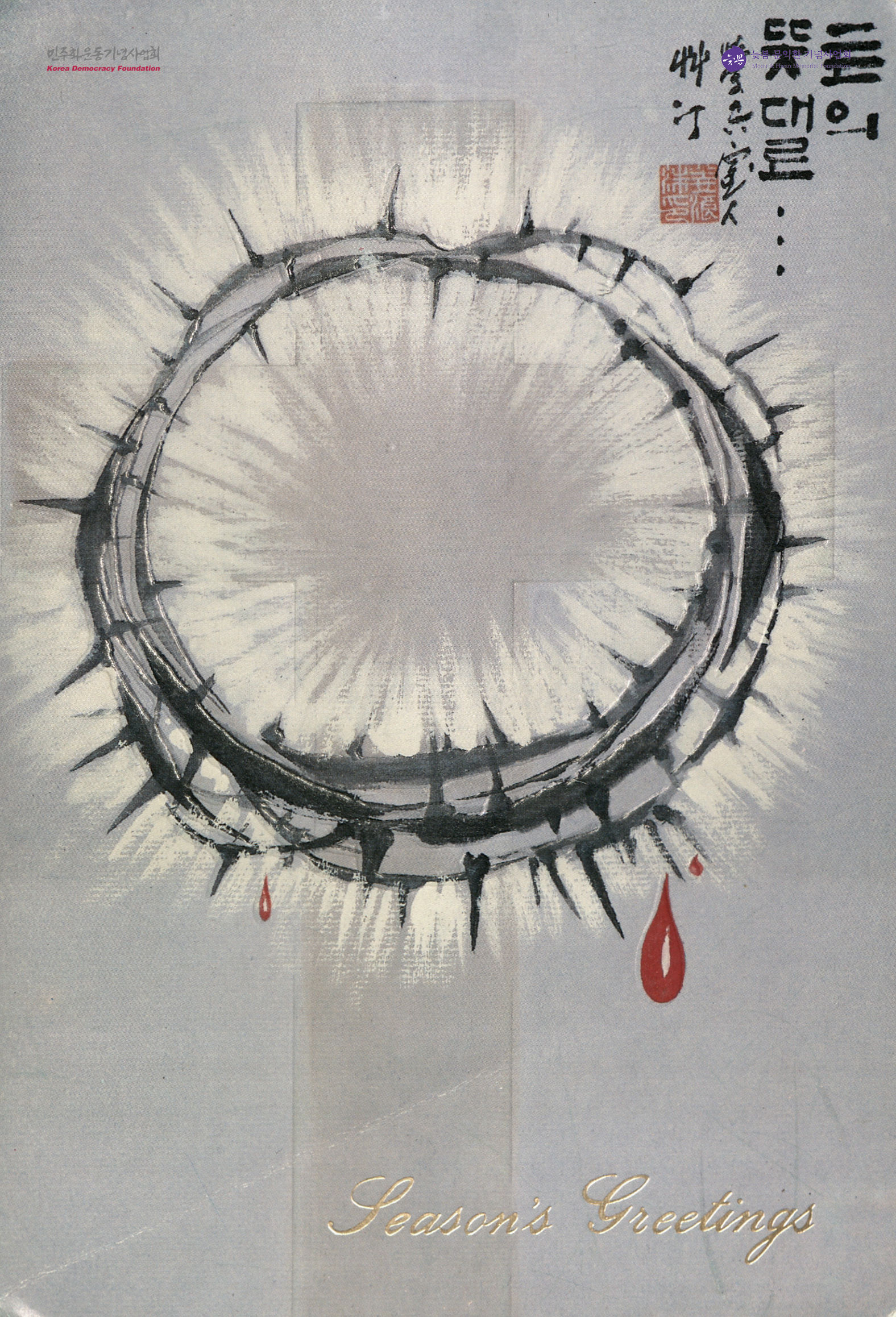 - 한승헌이 새해 인사를 적어 보낸 카드. 면류관 그림이 있음