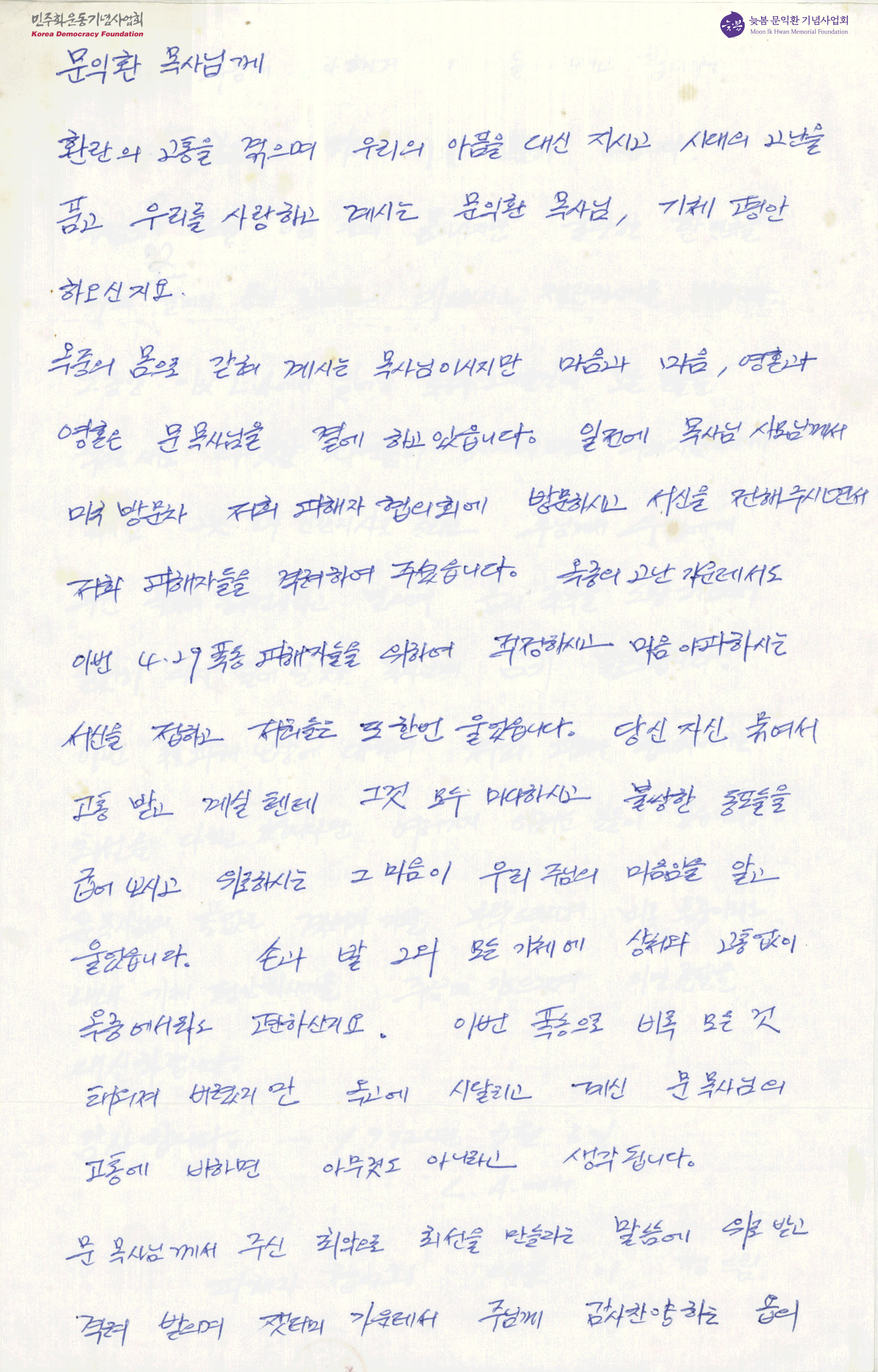 [이정이 문익환 목사에게 보내는 응원 서신]