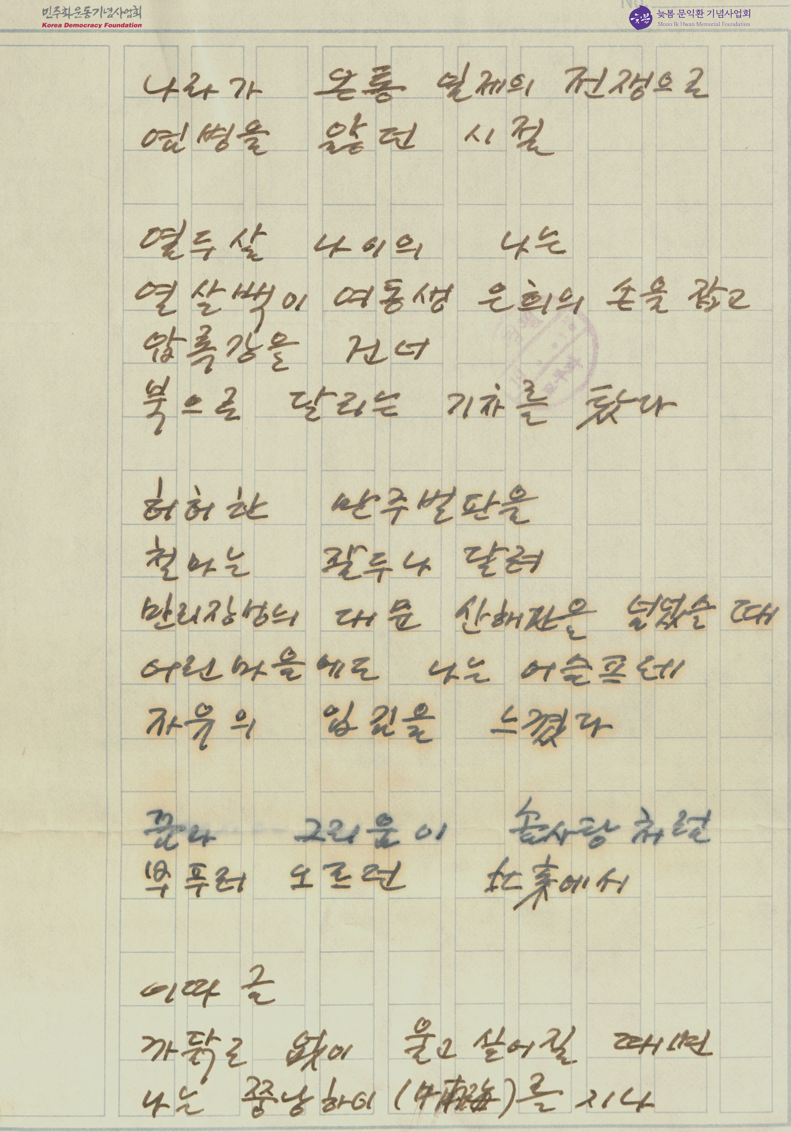- 문익환 목사가 자신의 인생을 시로 표현하며 좌절에 대해 적어놓은 원고