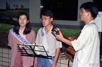 - 구국경기총학생회에서 만든 손수건으로 '부활하여 외쳐라! 살아라 통곡하라!'라는 내용과 징을 치는 남자의 그림이 있음