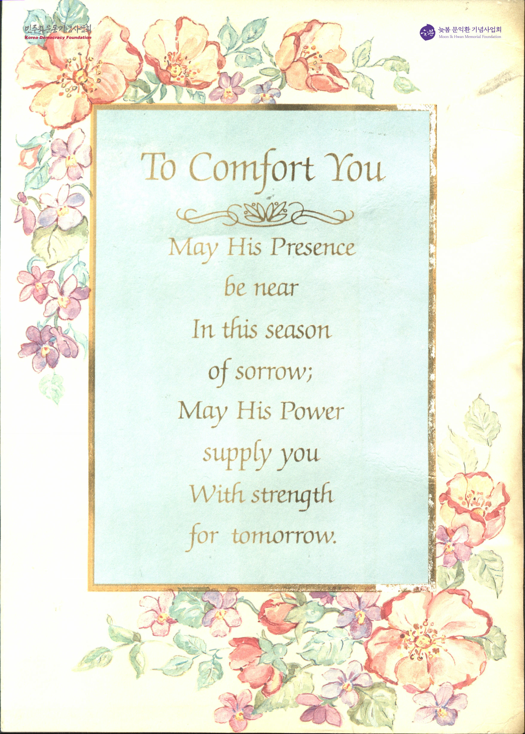 - 이상철, 김신자가 박용길 장로 가족에게 하나님의 위로하심이 함께 하기를 바라는 내용을 적어 보낸 서신
