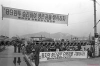 - 신한민주당 이민우 총재, 김영삼 고문 등이 헌법개정추진위원회 대구경북지부 결성대회에 참석한 후 2.28학생의거탑을 참배, 헌화하고 있다.