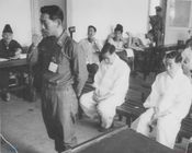 - 민추협 상임운영위원회에서 김영삼, 김대중 민추협 공동의장이 대화하고 있다. 김영삼이 전날 있었던 이민우 신민당 총재와의 회담 내용을 설명하고 있다.