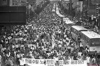 - 정토구현 전국승가회, 민불련, 대불련, 원각사 불교청년회 등이 개운사 앞에서 '원각사 경찰난입 및 불교탄압 범불교도 규탄대회'를 개최하였다. 광주시 불교청년회가 종교자유를 보장하라는 플래카드를 들고 대회에 참석하고 있다.