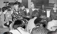 - 6월항쟁 기간 중 학생과 시민들이 비가 오는 가운데에도 우산을 들고 명동성당에서 철야농성을 하고 있다.