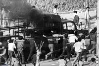 - 전경들이 방패로 벽을 만들어 6.26평화대행진에 참가한 민추협 회원과 시민들을 막아서고 있다.