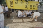 - 개운사에서 열린 양심수 전원석방을 위한 기원법회에 참여한 민가협 회원과 스님들이 행진을 막는 전경들과 몸싸움을 하고 있다.