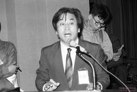 - 건국대 시위에서 학생들이 경찰을 향해 화염병을 투척하고 있다.
