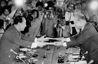 - 김영삼 대통령 내외가 중국 공식방문 중 상하이에서의 환영행사에 참석했다.