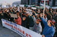 양심수 전원석방을 위한 기원법회 후 가두시위를 벌이는 불교도들
