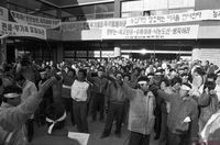 - 신민당 개헌추진위 충남도지부 결성대회 현장에서 민추협 회원들이 민주개헌 서명을 받고 있는 모습이다.