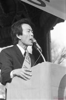 - 민통련 해산과 한광옥 대변인의 구속에 항의하는 민주단체탄압항거농성장에서 송경숙 민추협 회원이 발언하고 있다.