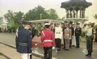 뉴욕 방문을 환영하며 김영삼에게 화환을 걸어주는 모습