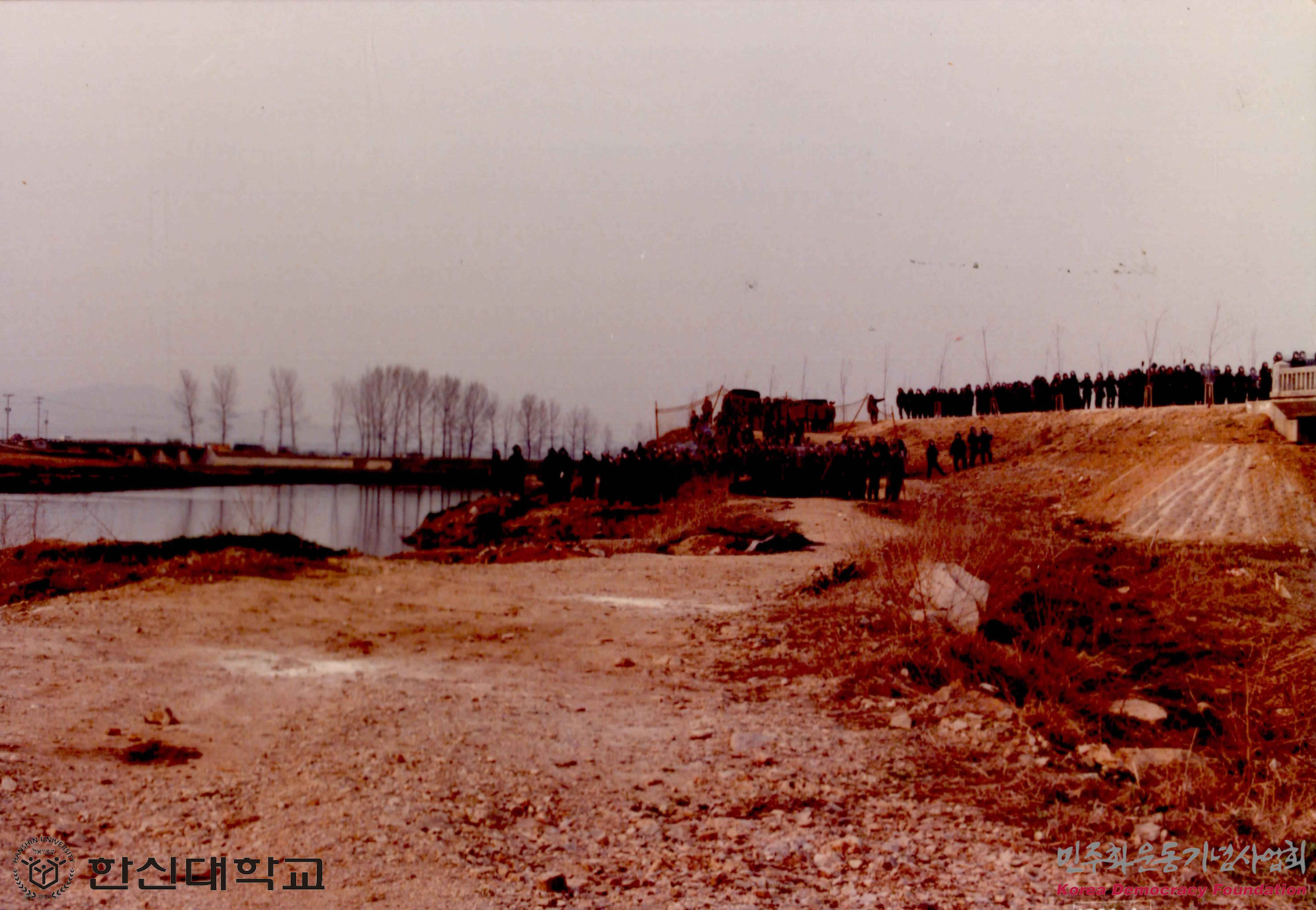 - 한신대 오산캠퍼스 앞 황구지천 옆 다리에서 학생과 대치하고 있는 무장경찰의 사진으로 추정