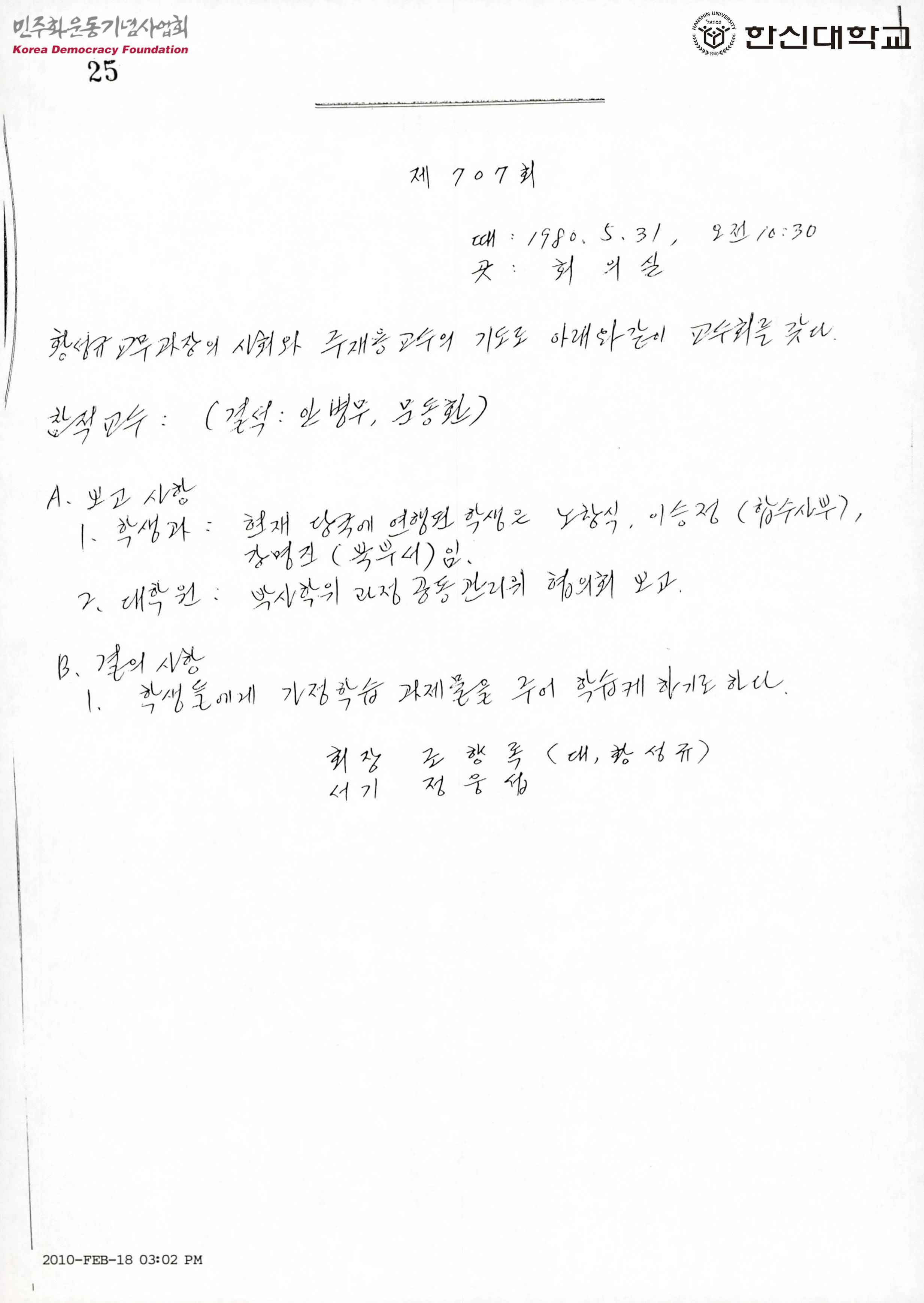 - 당국에 연행된 학생 확인한 내용과 학생들에게 가정학습 과제물을 주어 학습하게 하기로 결의한 내용 등을 다룸
