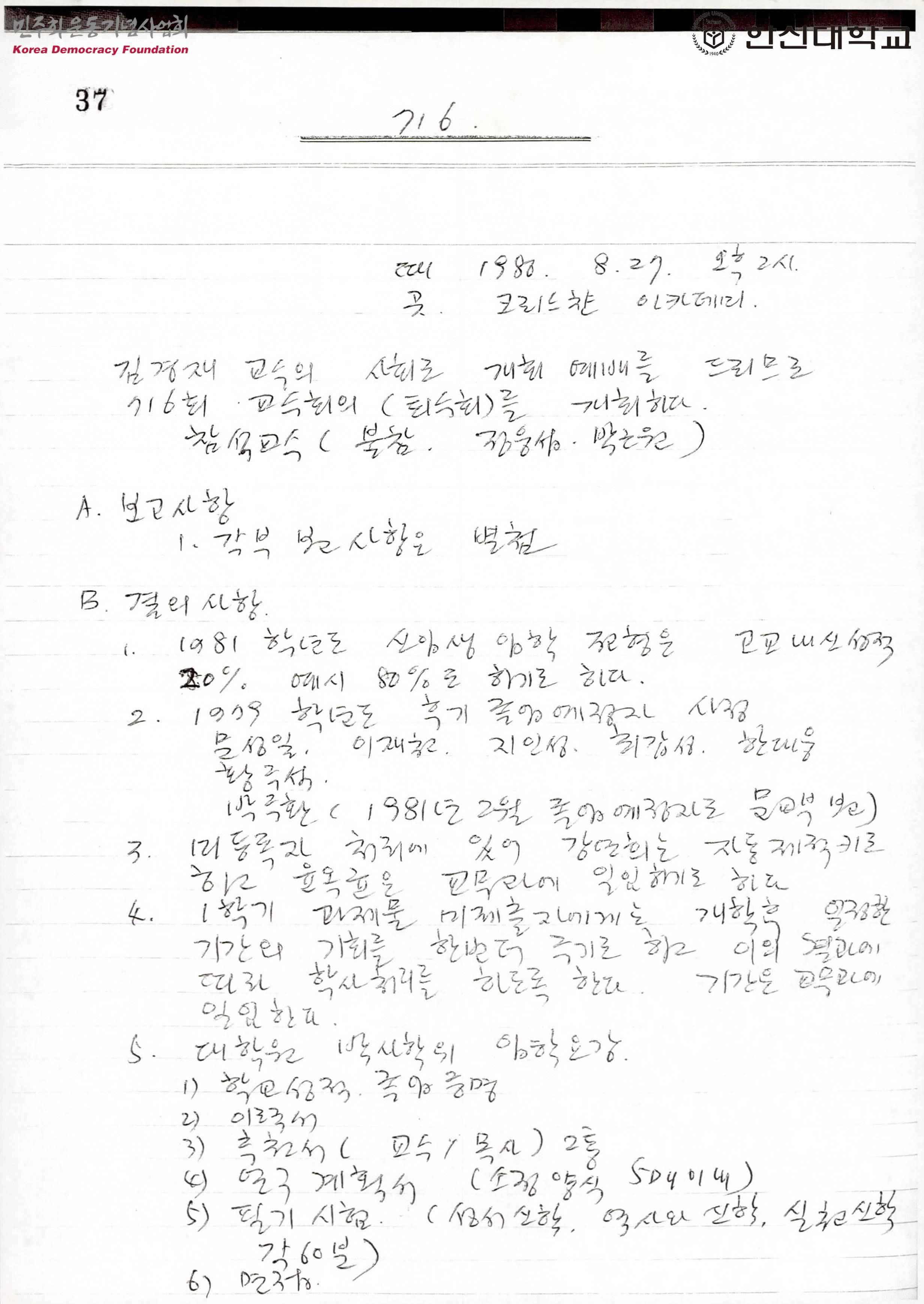 제716회 한신대 교수회의록