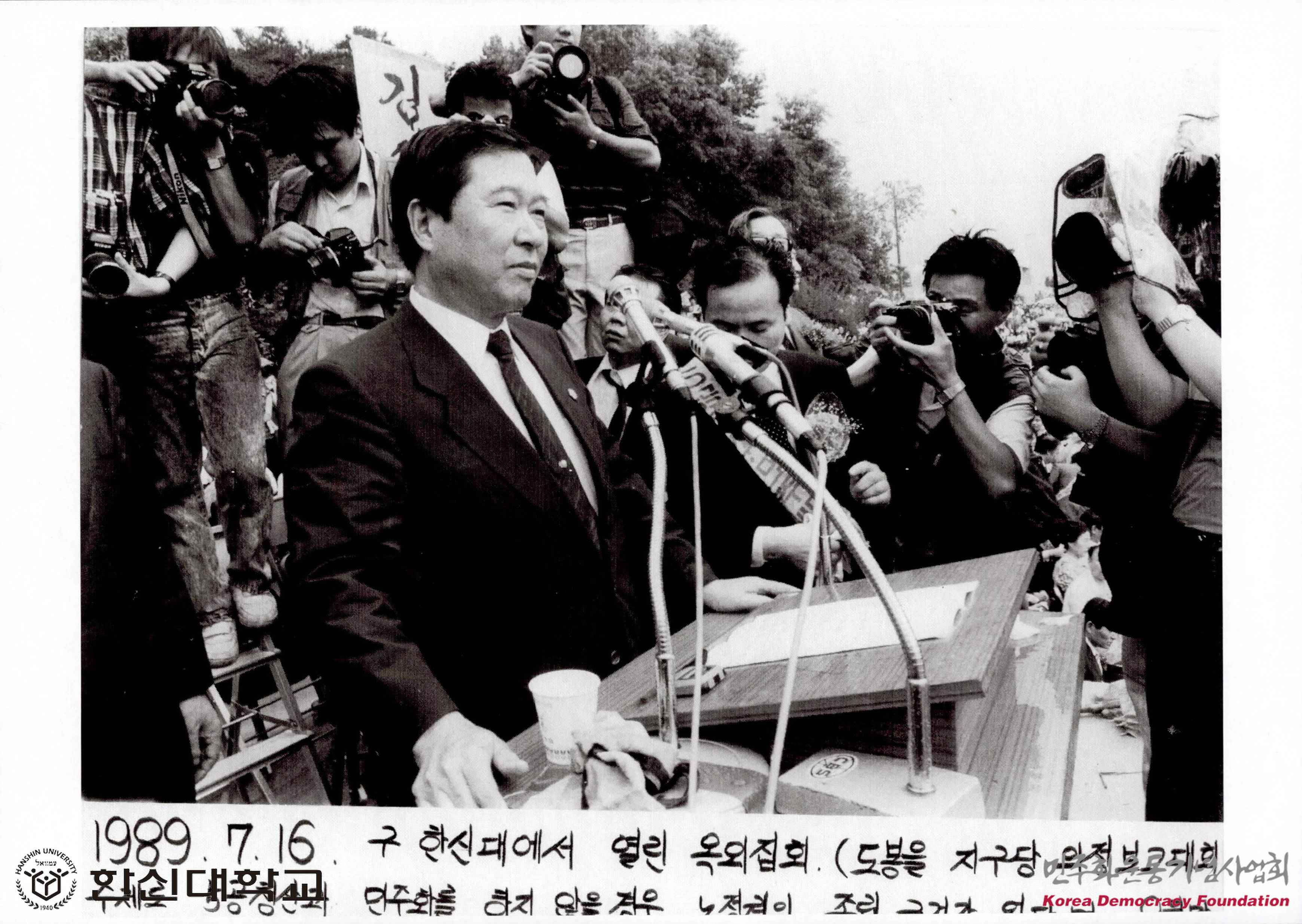 - 김대중이 구 한신대에서 열린 옥외집회에 참여한 모습을 촬영한 사진