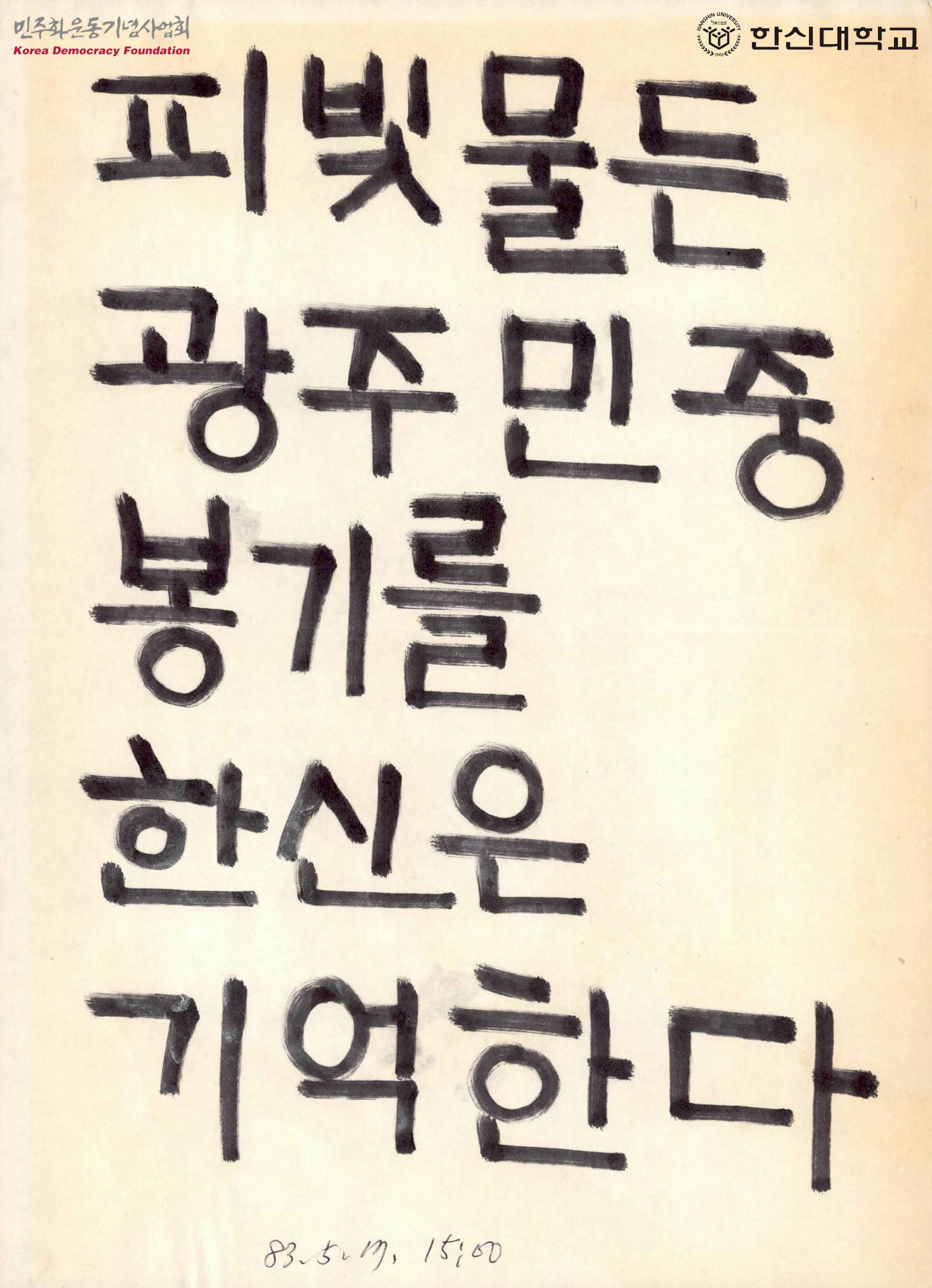 - '피빛 물든 광주민중봉기를 한신은 기억한다'라고 쓰여진 전단지