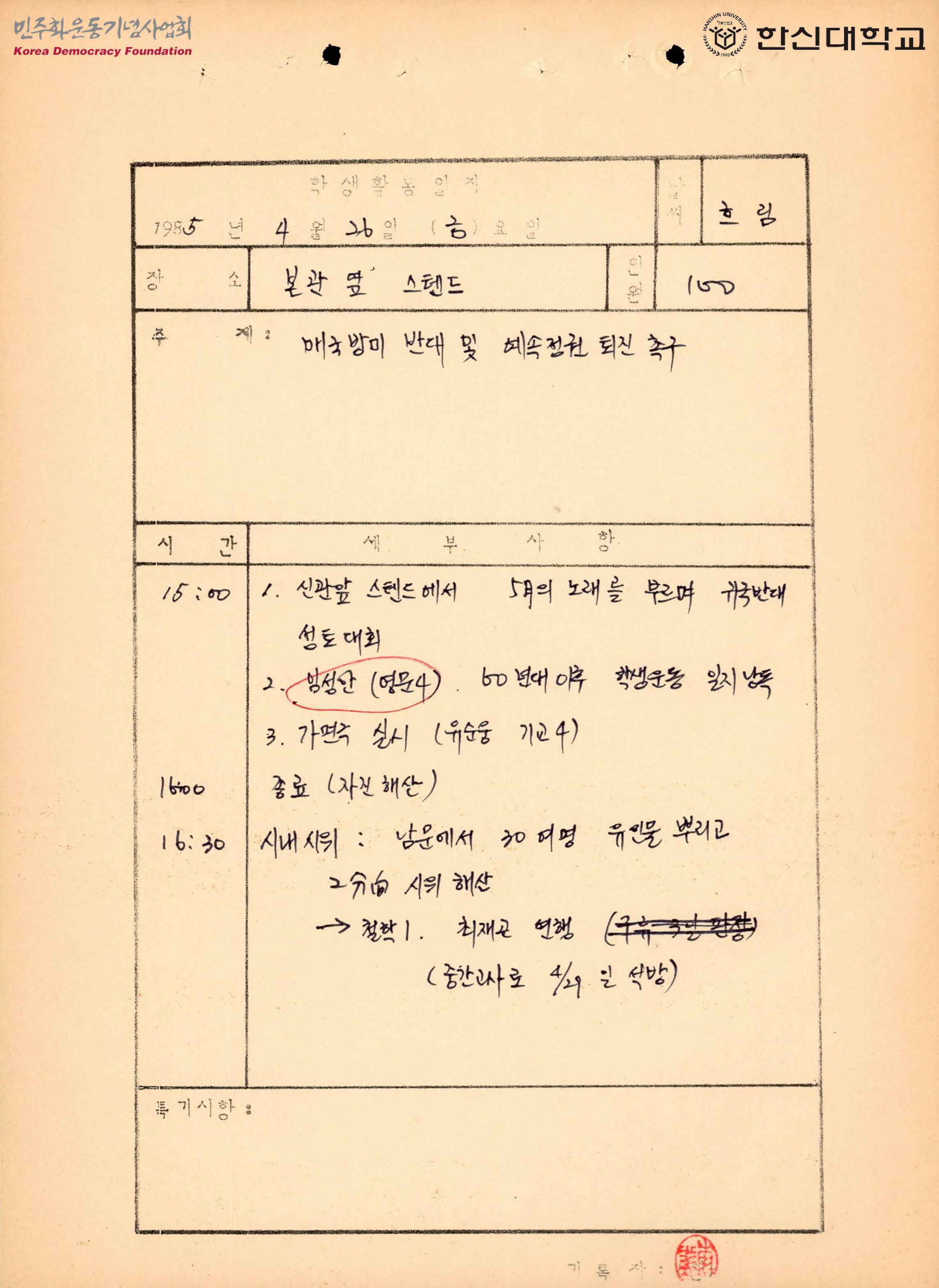 - 매국방미 반대 및 예속정권 퇴진 촉구 성토대회의 세부적인 진행 사항이 적혀 있는 문서