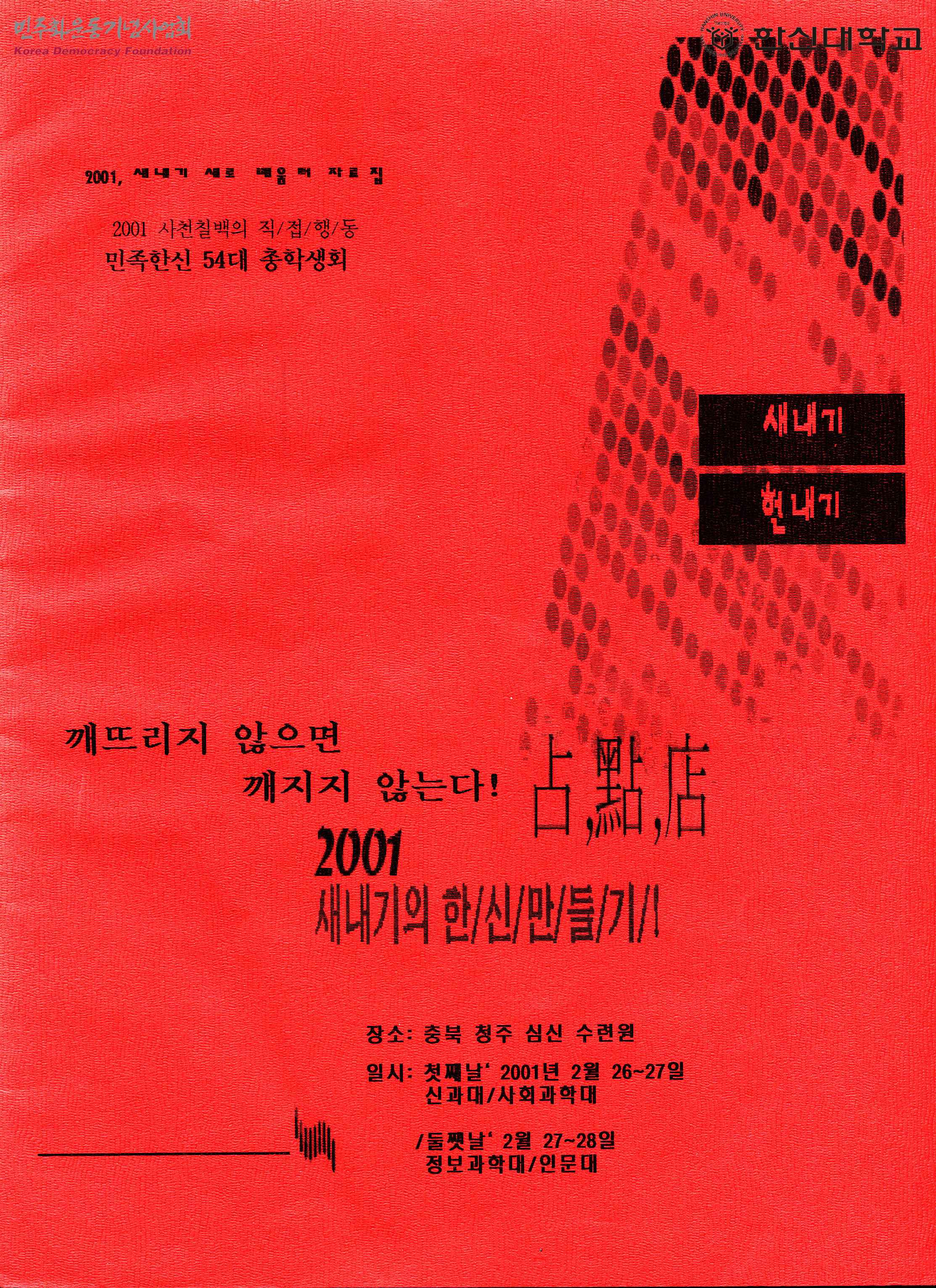 한신대 2001학년도 신입생 오리엔테이션 자료집 - 깨뜨리지 않으면 깨지지 않는다! 占, 點, 店