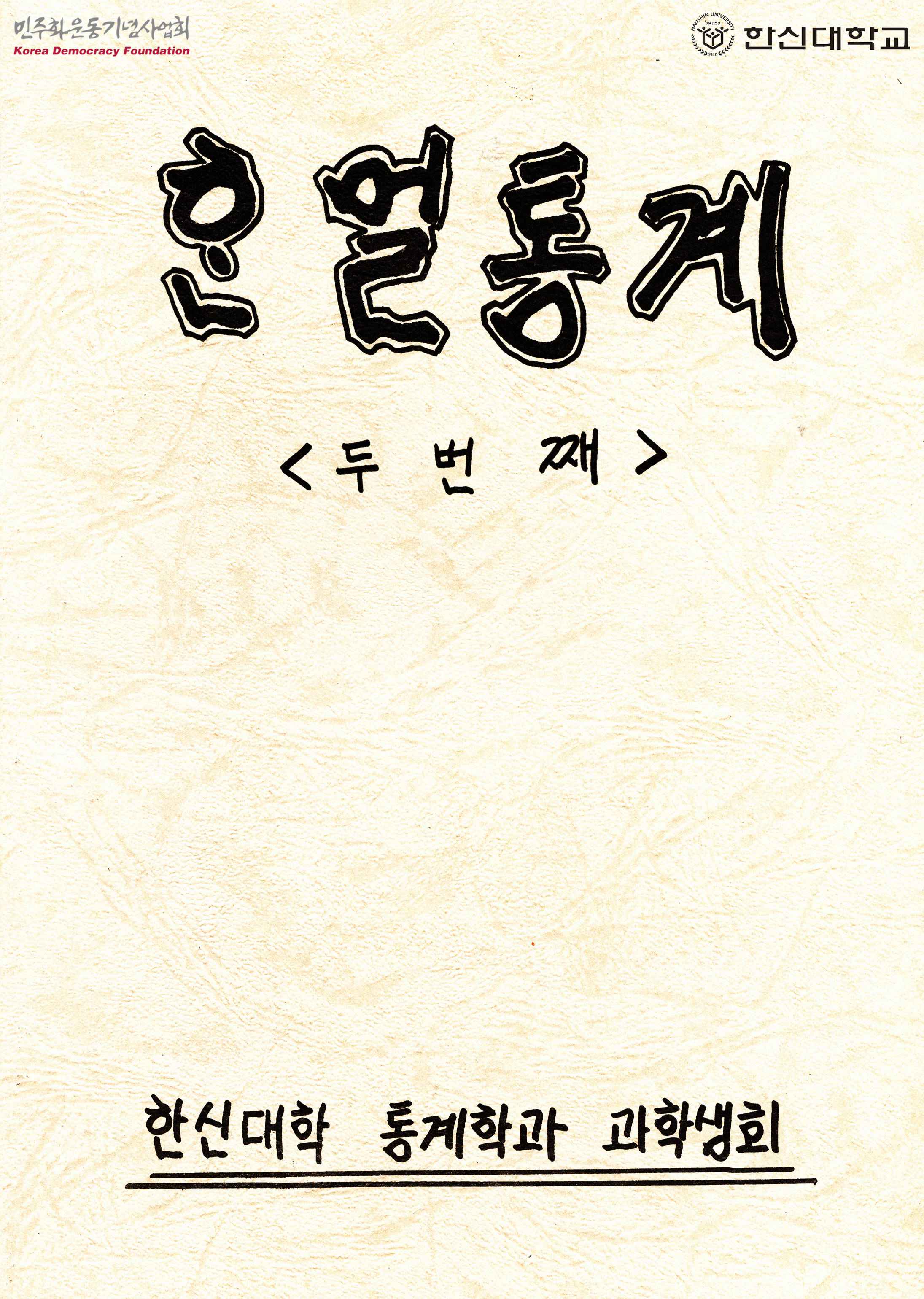 - 한신대학교 통계학과의 자료집으로 목차는 다음과 같음 권두언 통계학의 사회진출 여러분은 지금 무엇을하고 계십니까? 각 부소개 수필 편집후기