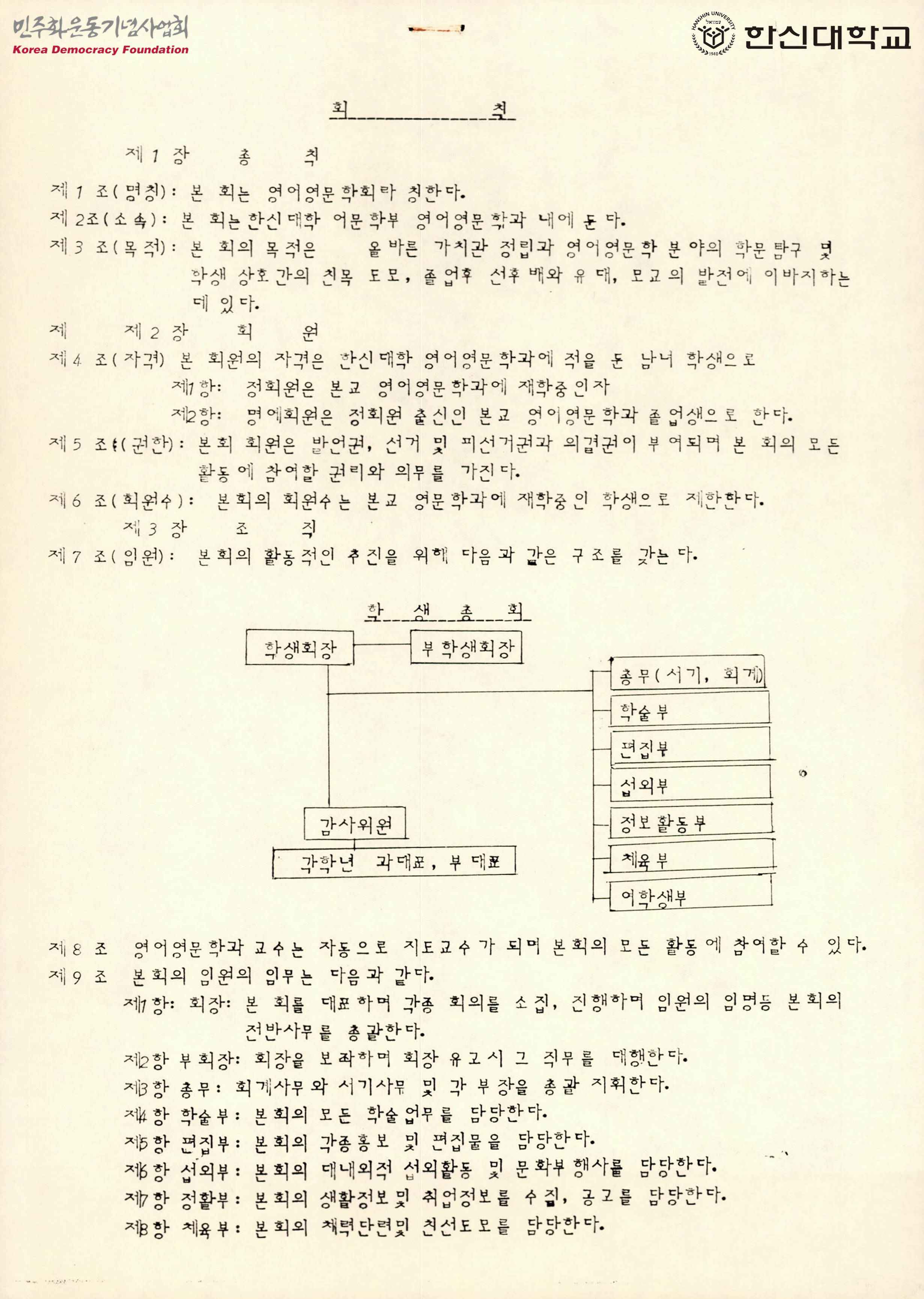 한신대 영어영문학회 회칙(1988.3.25)