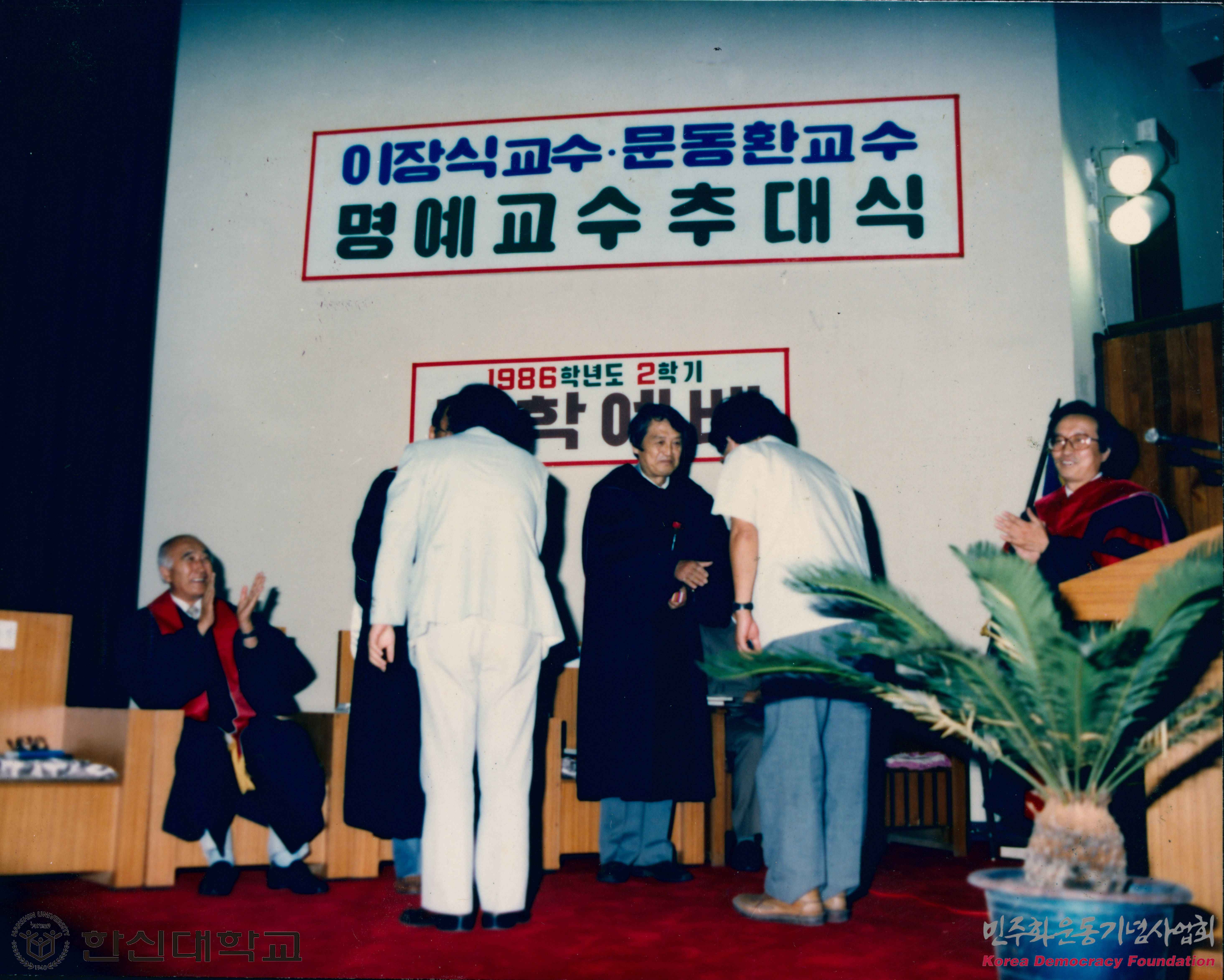 1986학년도 한신대 2학기 대학예배 및 이장식 교수, 문동환 교수 명예교수 추대식 사진