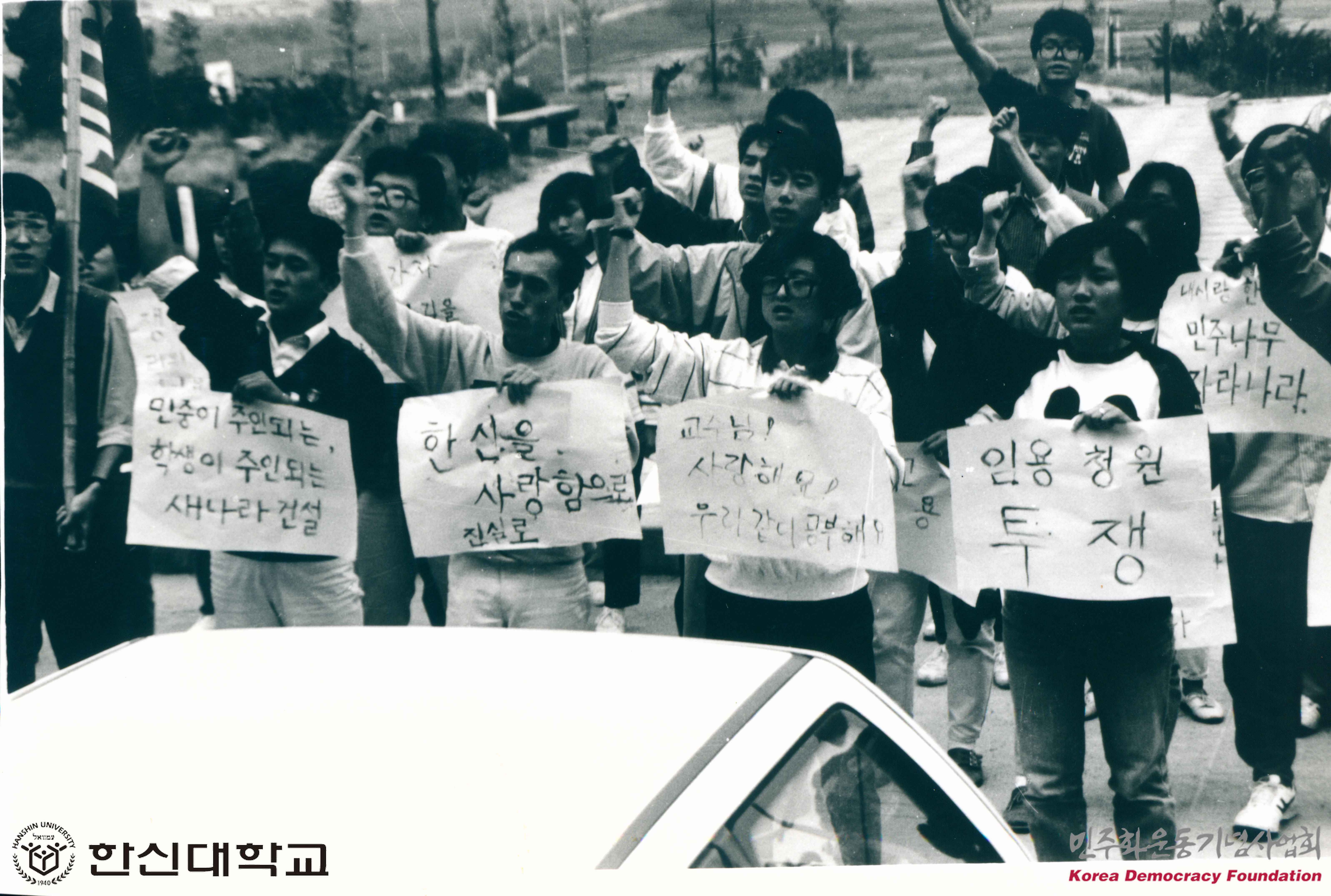 한신대 교수임용을 청원하며 혈서투쟁을 벌이는 학생들