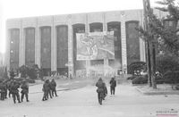 - 민중연대 안마당에서 마임 공연을 하는 학생들의 모습을 촬영한 사진