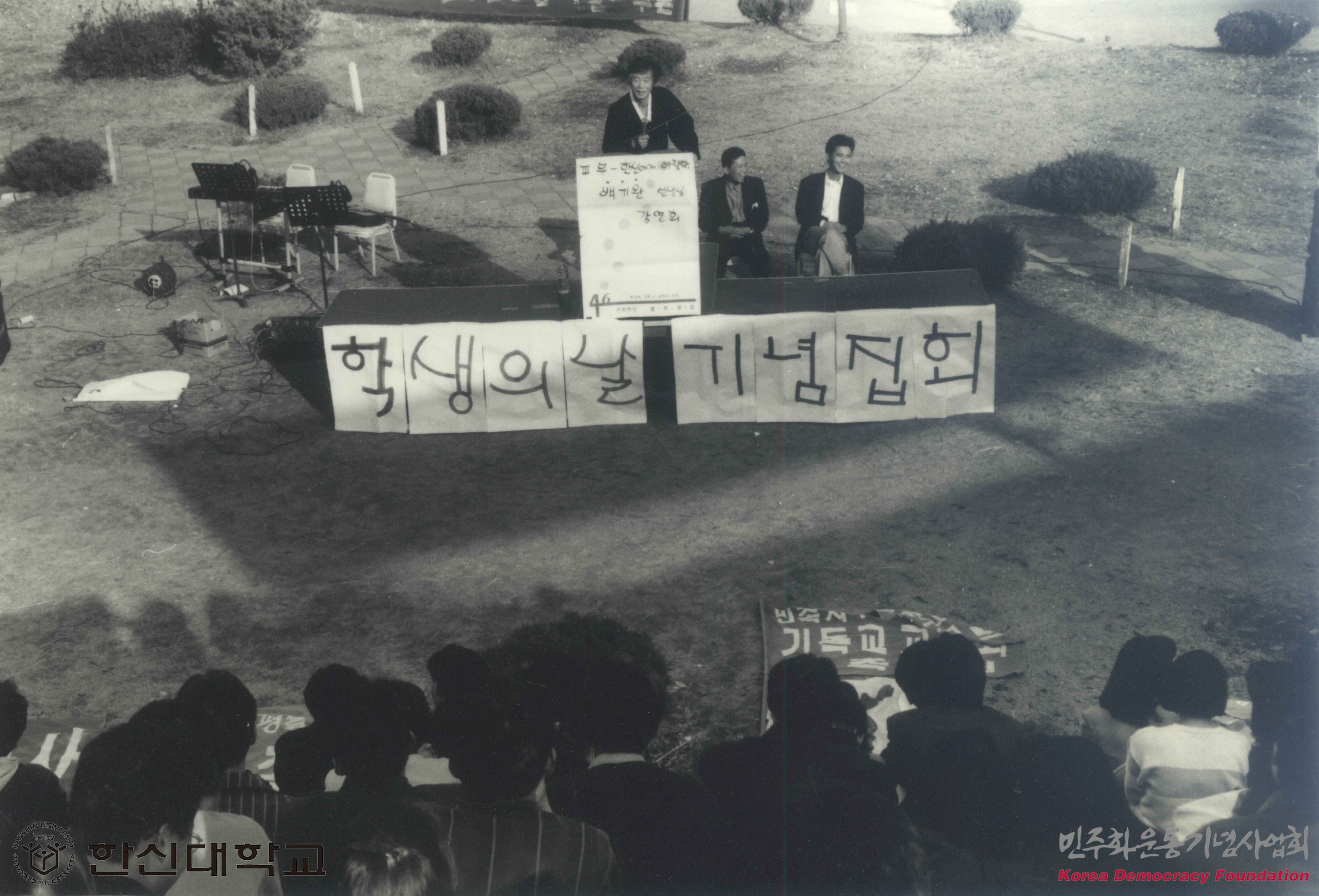 1993년 학생의 날 기념집회에서 강연하는 백기완 선생 사진