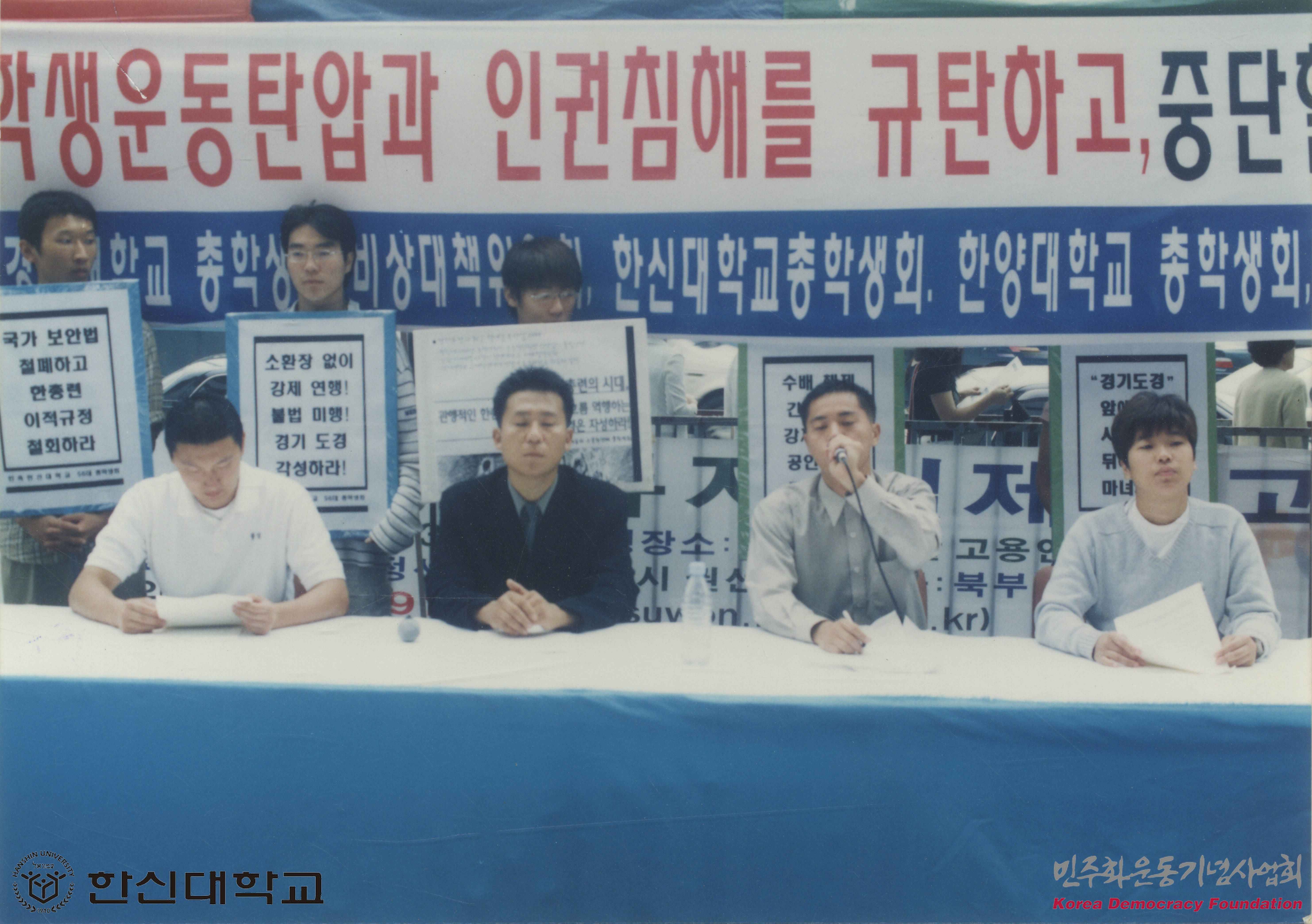 - 학생운동 탄압을 멈추고 경찰은 각성하라는 내용으로 진행된 기자회견의 모습을 촬영한 사진