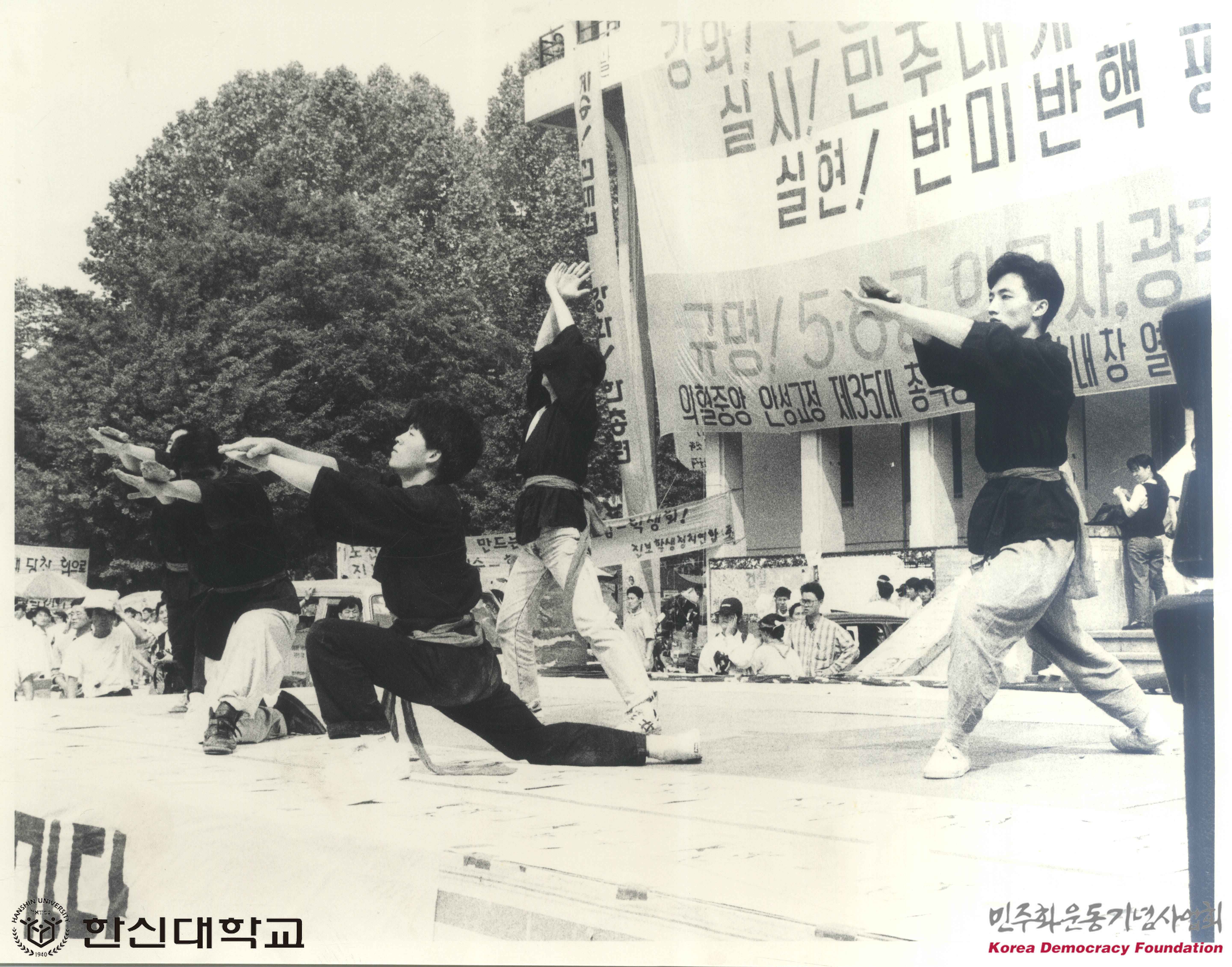 - 경기남부총련 행사에서 마임을 추는 모습과 집회를 하는 모습을 촬영한 사진