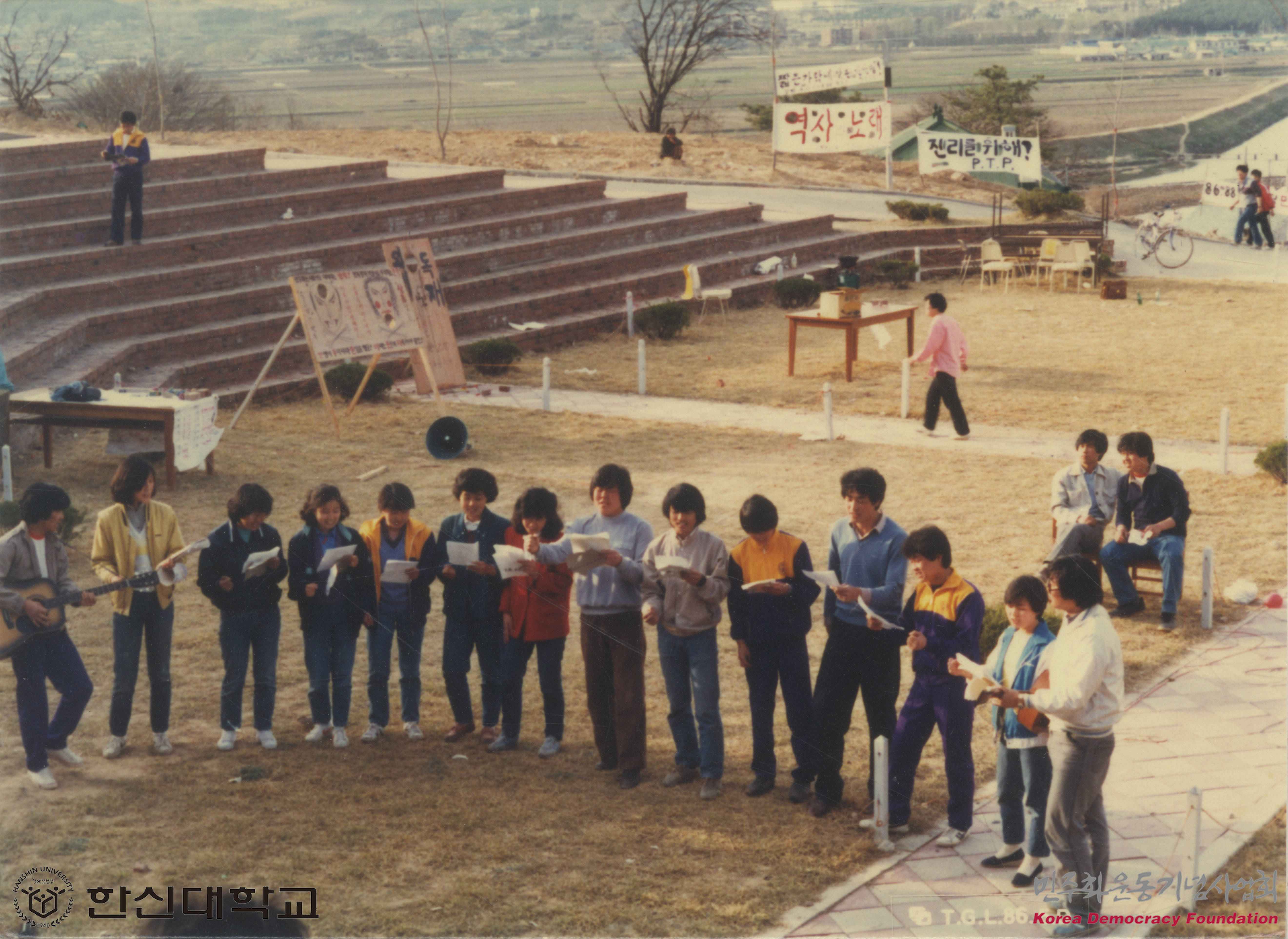 - 오월계단에서 기타치며 노래부르는 학생들의 모습을 촬영한 사진