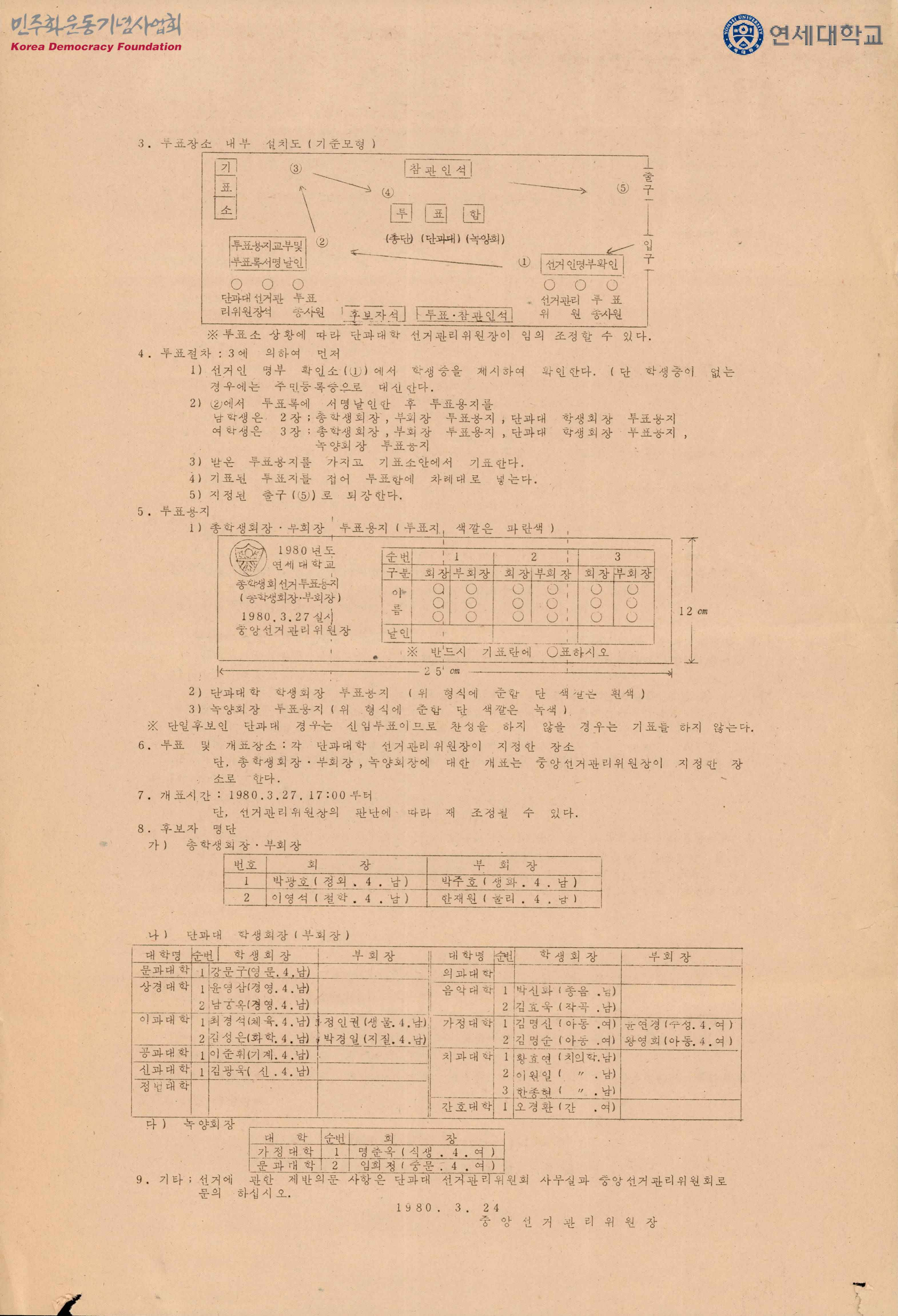 - 학도호국단에게 억압당했던 총학생회가 부활한 후 첫 선거를 맞이하며 선거에 적극적인 참여를 독려하는 내용과 선거시행세칙이 적혀 있는 문서