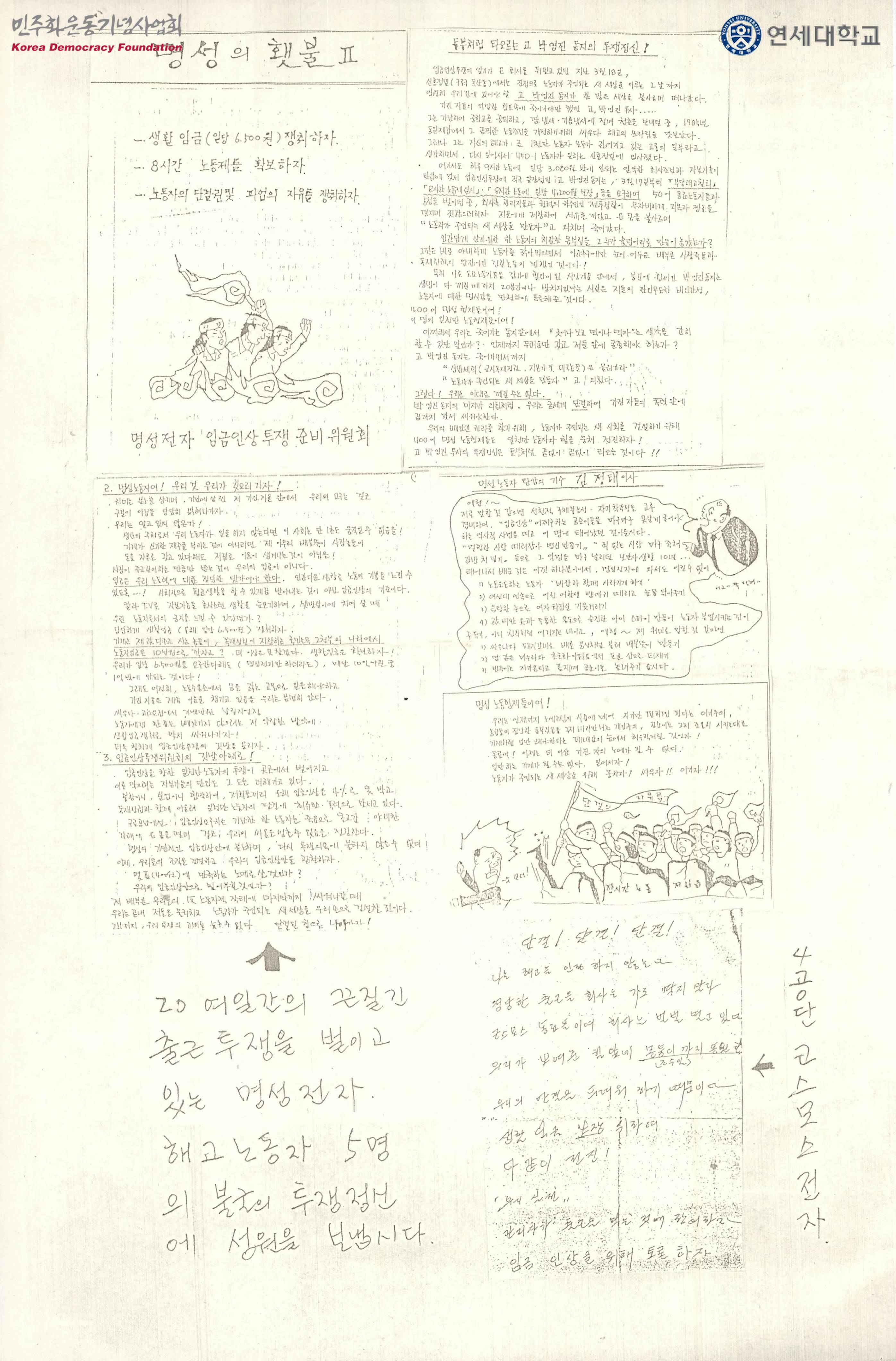 - 명성전자 노동자들의 임금인상과 노동권 보장 투쟁에 대한 내용이 담긴 유인물