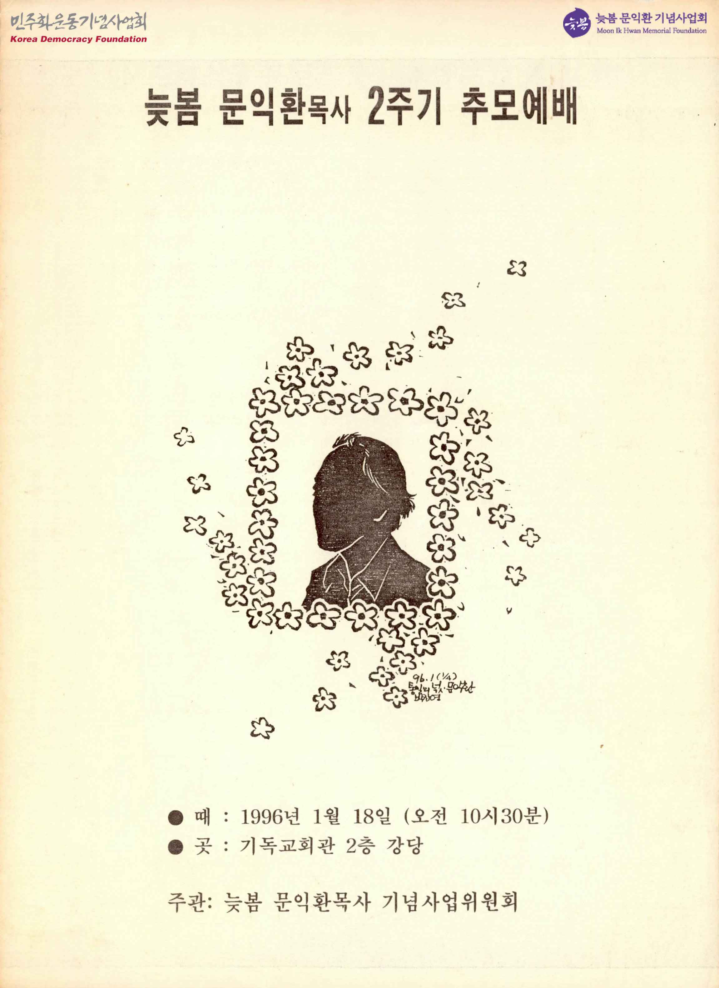 - 늦봄 문익환 목사 2주기 추모예배 자료집으로 식순은 다음과 같음 - 묵도 - 나옴찬송 - 기도 (이명남 목사) - 성경봉독 (박병설 총무) - 말씀 (임택진 목사) - 추모사 (김동완 목사) - 유족인사 - 추모의 노래 - 축도 (유재천 목사) - 알림
