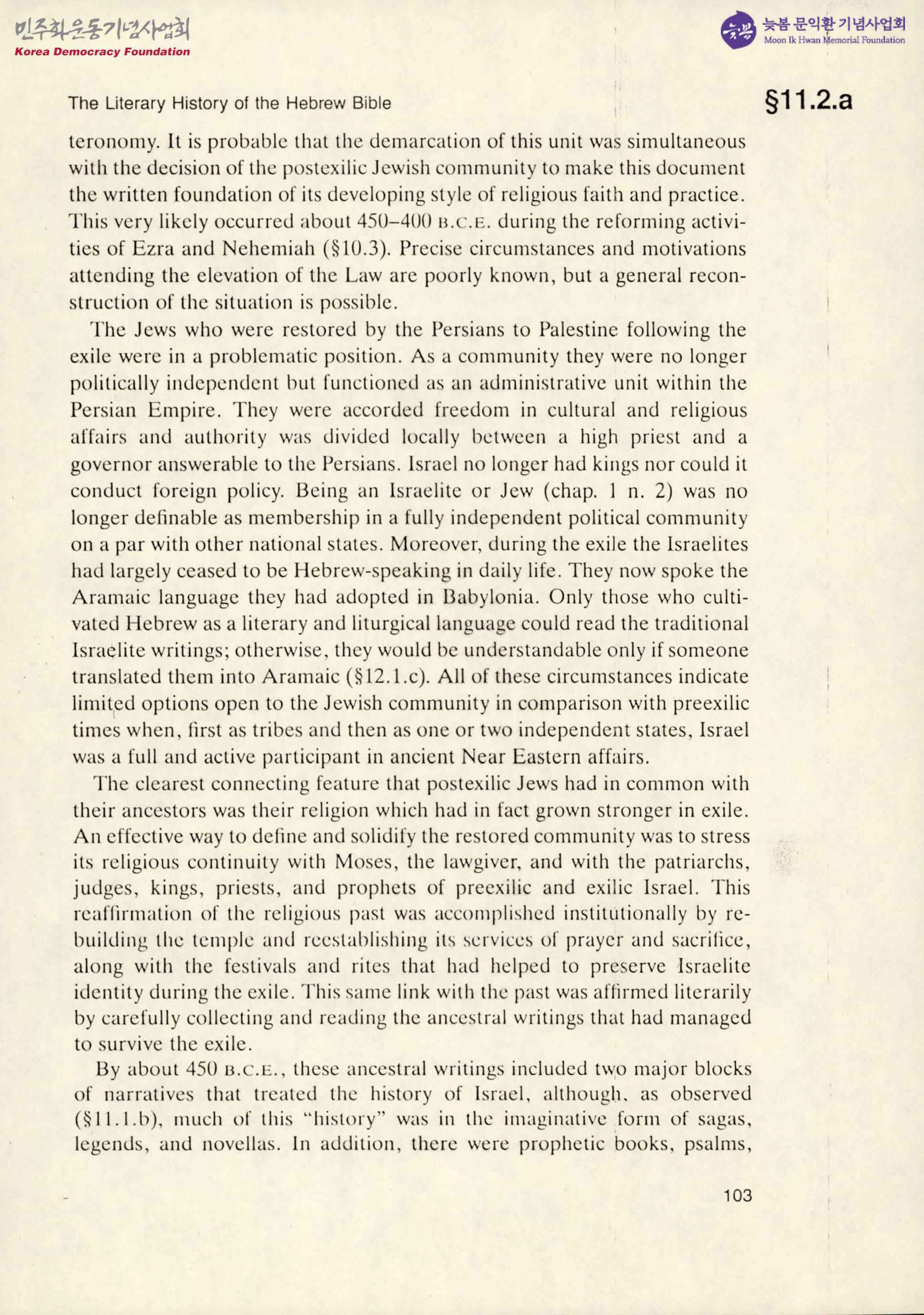 - The Literary History of the Hebrew Bible 라는 제목으로 히브리 성경의 문학사를 서술한 문서로 종교의 중요성과 히브리 성경의 역사를 포함한 내용임