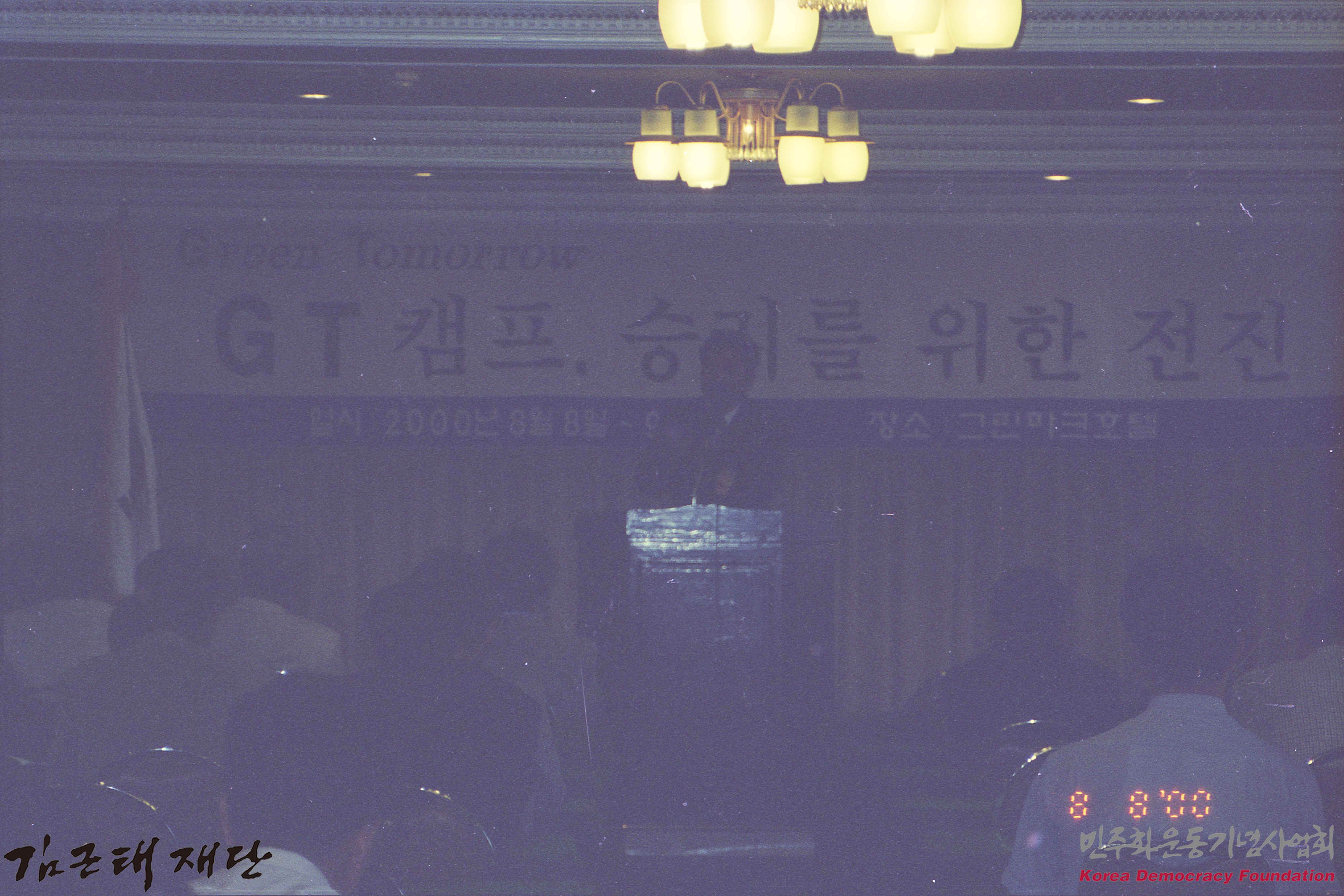 - 2000년 8월 8일 그린마크호텔에서 열린 GT캠프, 승리를 위한 전진 행사에서 참석자가 연설하는 모습