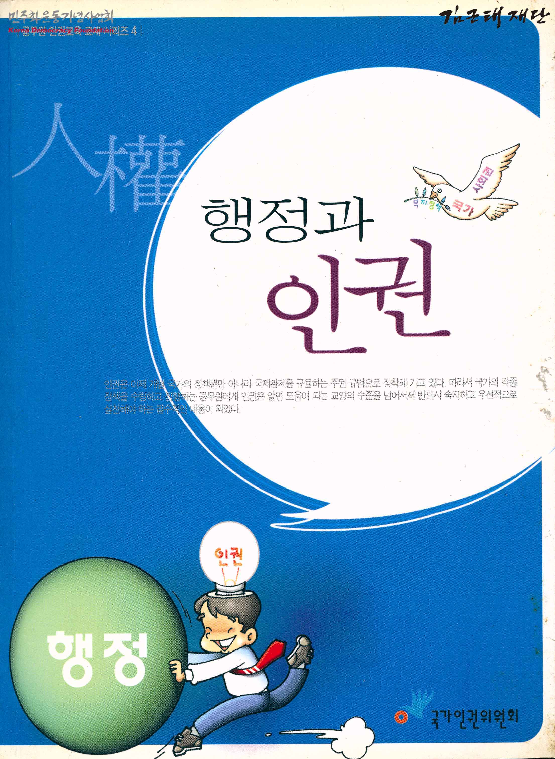 - 인권 보호와 실행을 위해 정부 기구뿐만 아니라 사회 구성원들도 쉽게 이해할 수 있도록 쓴 책으로 목차는 아래와 같음 1. 인권일반 2. 행정과 인권 3. 노동정책과 인권 4. 복지정책과 인권 5. 아동정책과 인권 6. 여성정책과 인권 7. 교육정책과 인권 8. 환경정책과 인권 9. 정보정책과 인권 10. 향후과제: 인권보호 사회 구축을 위하여
