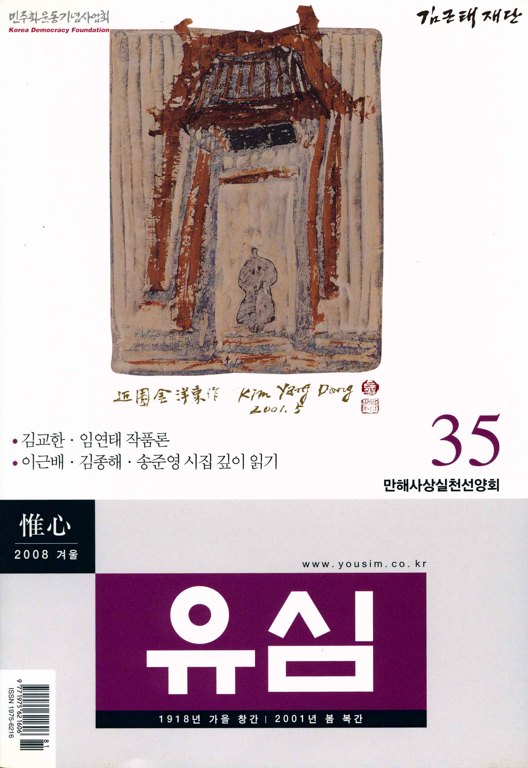 - 주요 목차는 다음과 같음 발행인 칼럼 / 잘나가는 사람들이 새겨둘 잠계 권두 논단 / 우리 시의 발전을 저해해온 것들 김교한 특집 / 신작·대표시조 '시의 거리에서' 외 9편 임연태 특집 / 신작·대표시 '입, 똥, 입동' 외 11편 유심시단 / 잡초 유심시조백일장 / 심사평 시집 깊이 읽기 / 유장과 함축의 결속을 통한 모국어의 연금술 시집속의 시 한 편 / 권도중 시집 <네 이름으로 흘러가는 강> 박구하 시인을 추모하며 종교적 상상력과 문학(15) / 동일성과 비동일성