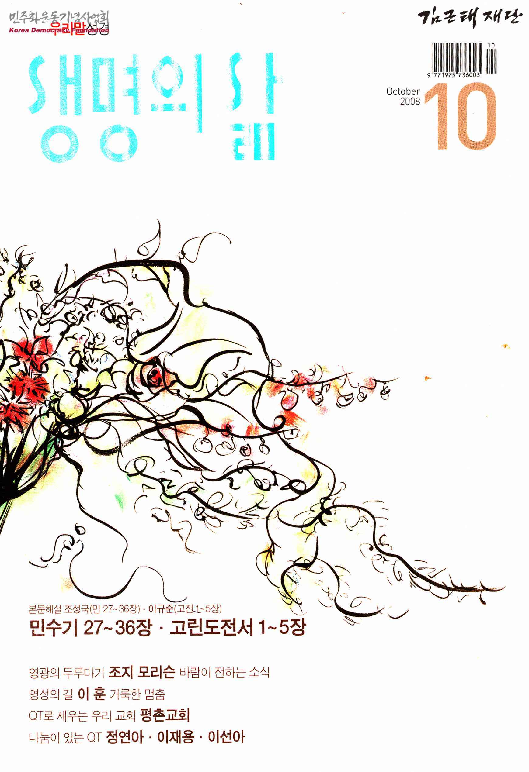 - 다음과 같은 내용 등이 수록됨 조리 모리슨의 영광의 두루마기 바람이 전하는 소식 '생명의 삶' 활용법, 묵상 본문 민수기 27~36장 고린도전서 1~5장, 시와 묵상 가을기도 어느 외과 의사의 간증 오늘도 계속되는 십자가 사건 영성의 길 거룩한 멈춤 할머니가 채운 사랑의 족쇄 영혼의 표정을 가꾸는 방법