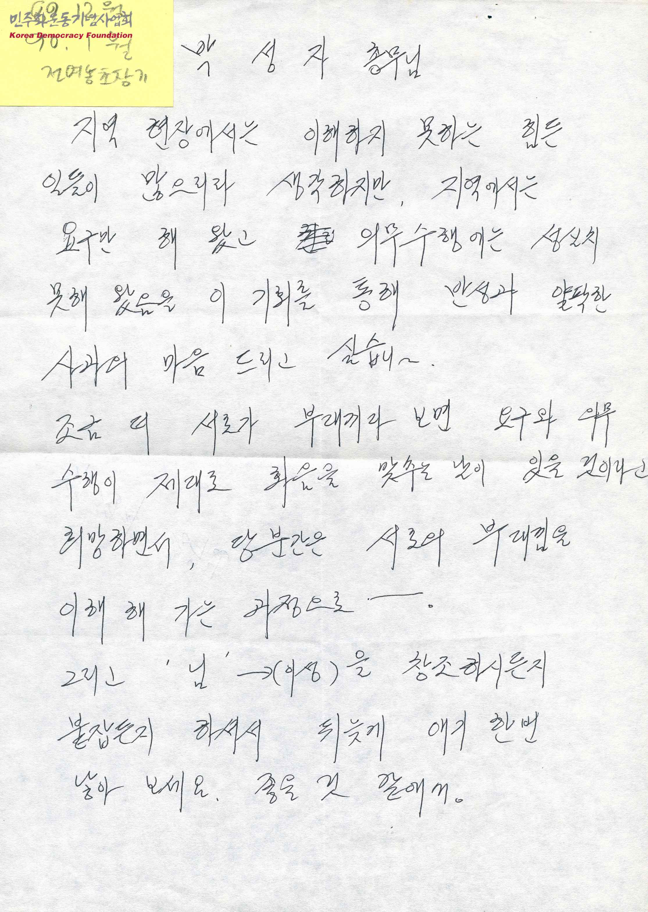 - 박성자에게 전여농회원으로 추정되는 이들이 작성한 편지로 박성자에 대한 사과와 응원 등이 담겨 있음