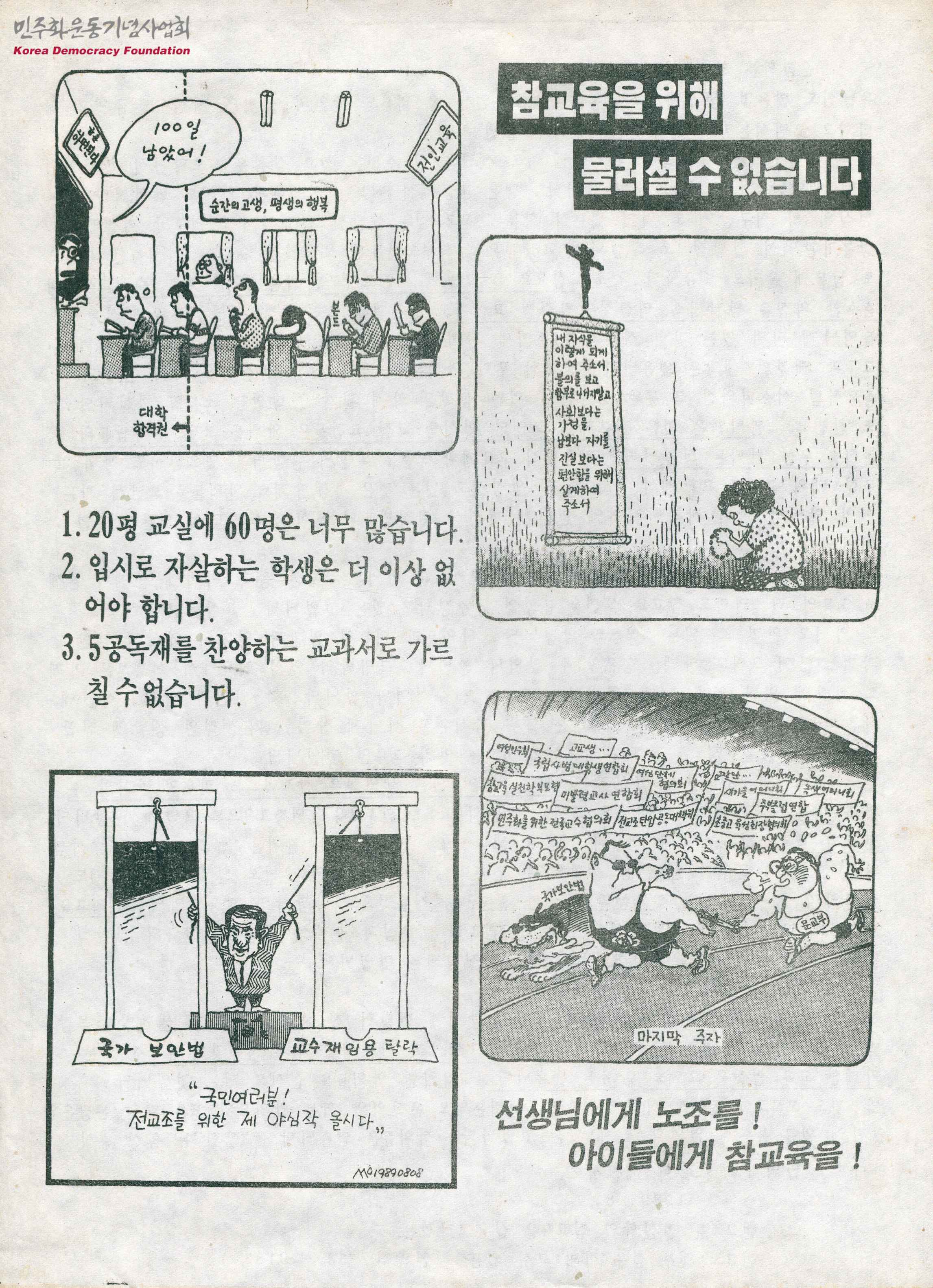 - 전교조 정주·정읍 지회 교사 일동이 학부모에게 보낸 문서로 교장, 교감은 자기 자리를 지키기 위해서 윗사람의 눈치를 보지만, 전교조 교사들은 아이들을 우선 생각하기에 참교육 실현을 굽힘없이 주장함을 이야기하고 있음
