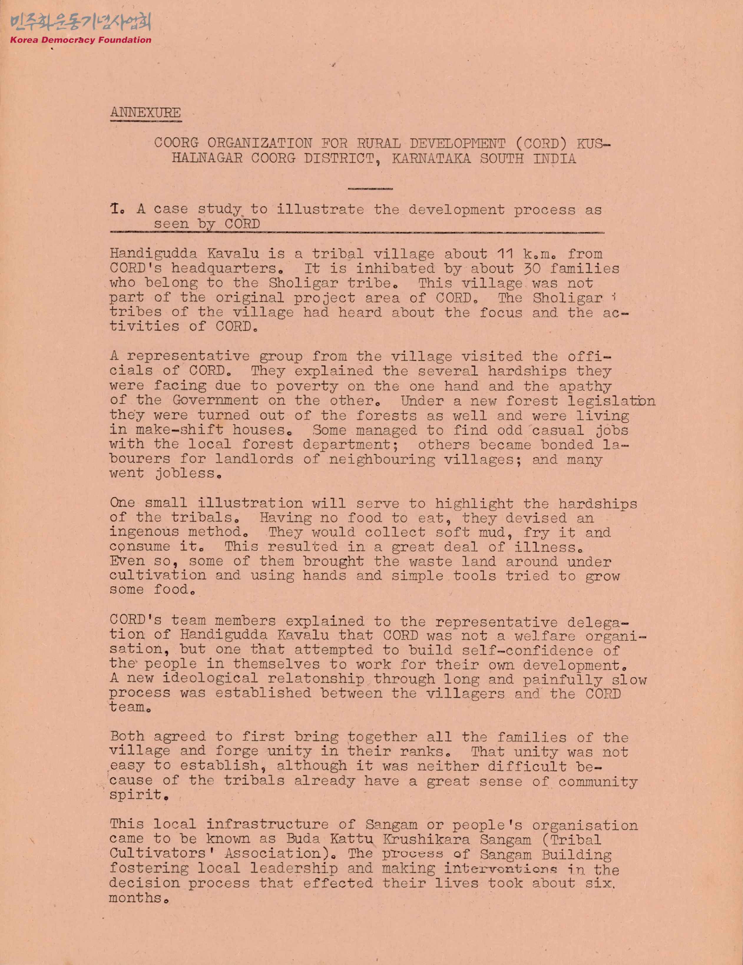 COORG ORGANIZATION FOR RURAL DEVELOPMENT (CORD) KUSHALNAGAR COORG DISTRICT, KARNATAKA SOUTH INDIA(농촌개발협력기구(CORD)쿠살나 가르쿠르 구 카르나타카, 남인도)