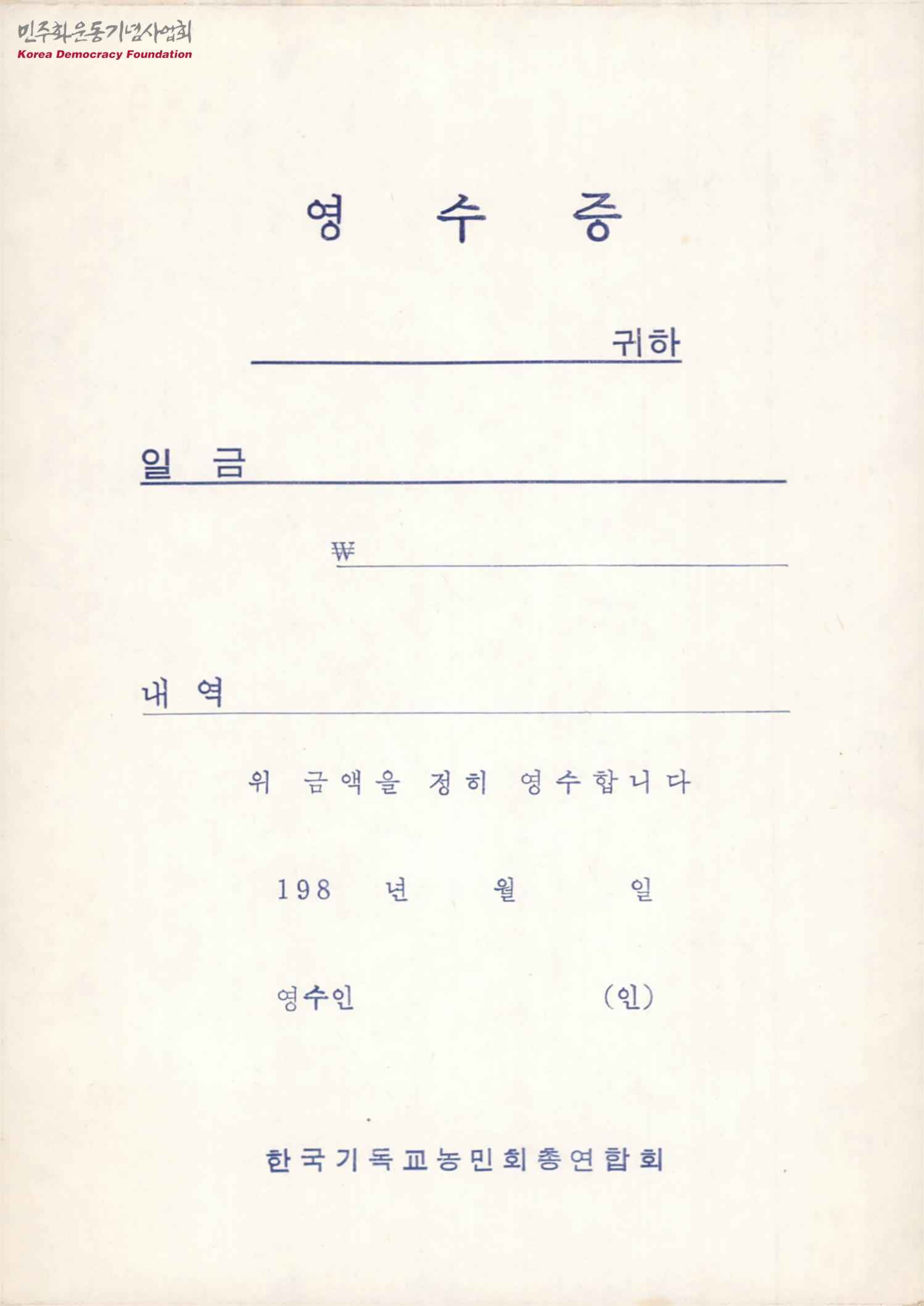 - 한국기독교농민회총연합회에서 제작한 영수증의 서식