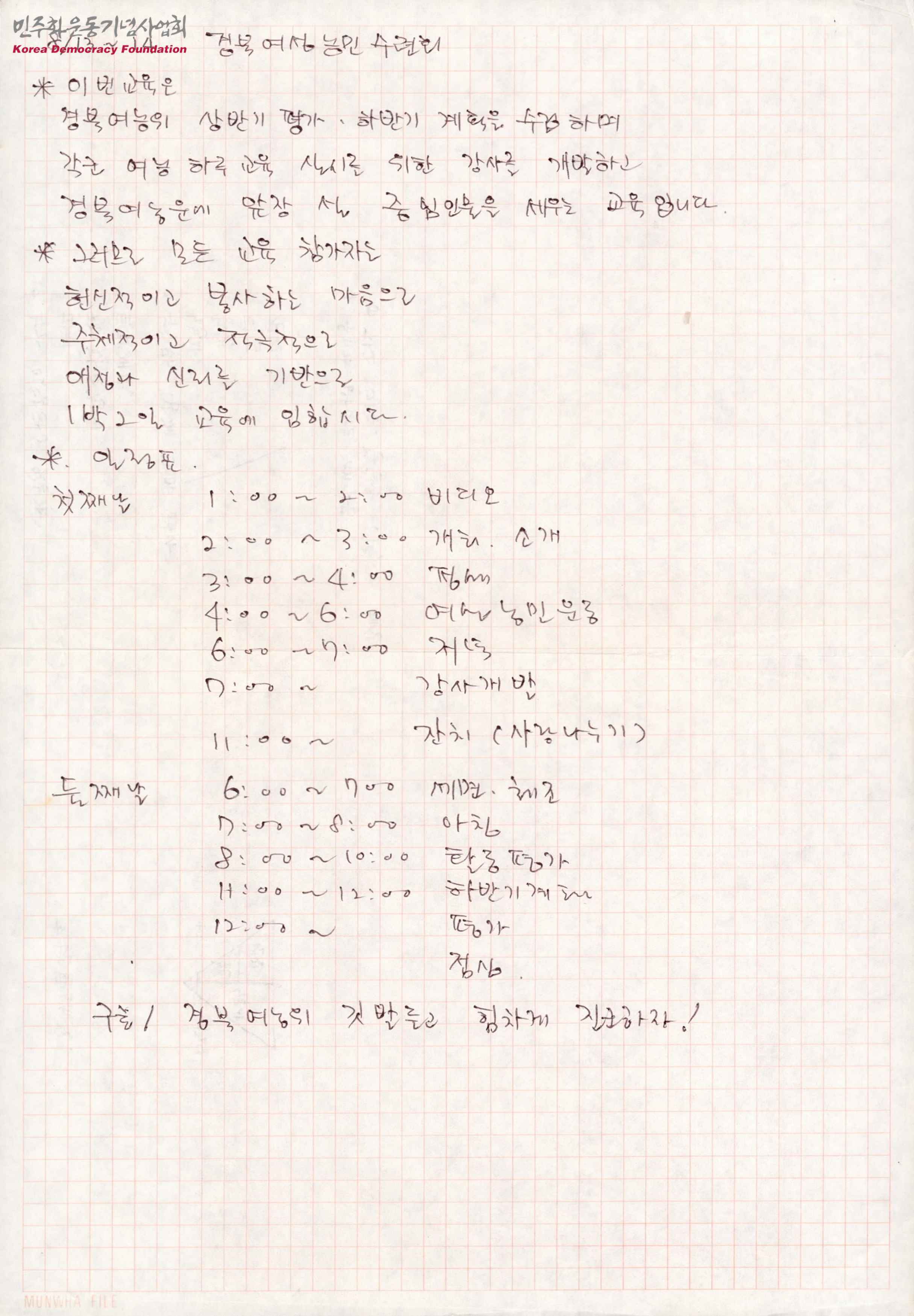 [경북여성농민수련회 계획서]