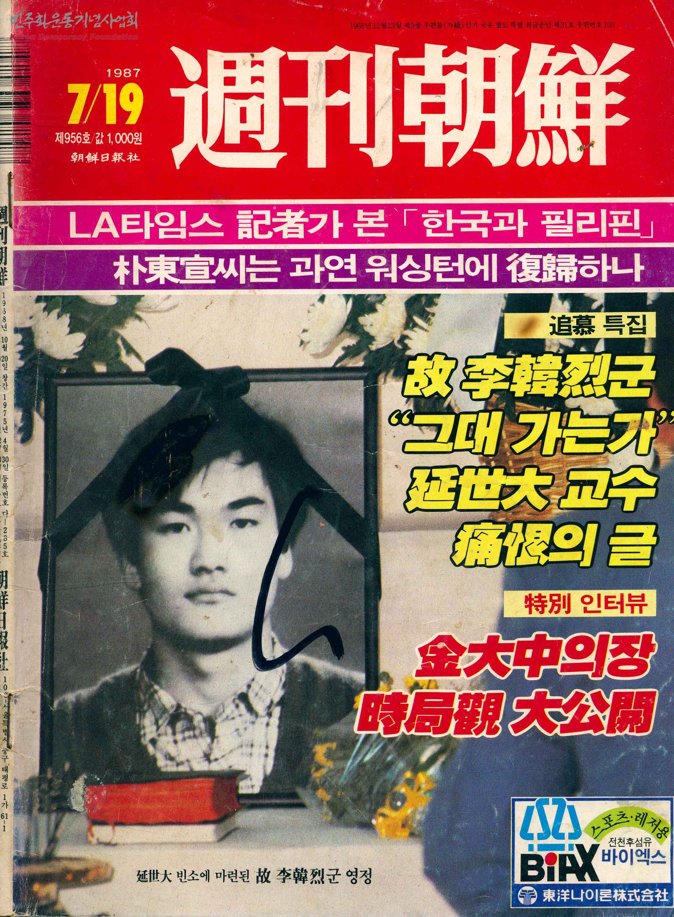 - 조선일보사의 주간지로, 다음과 같은 내용 등이 수록됨 고 이한열 군 시·일기·편지 공개 이한열군 「사투 27일」병상일지 「정치난국」풀어줄 원로가 아쉽다 「광주사태」 진상부터 밝혀야 한다 복권된 김대중 의장 「시국관」 대공개