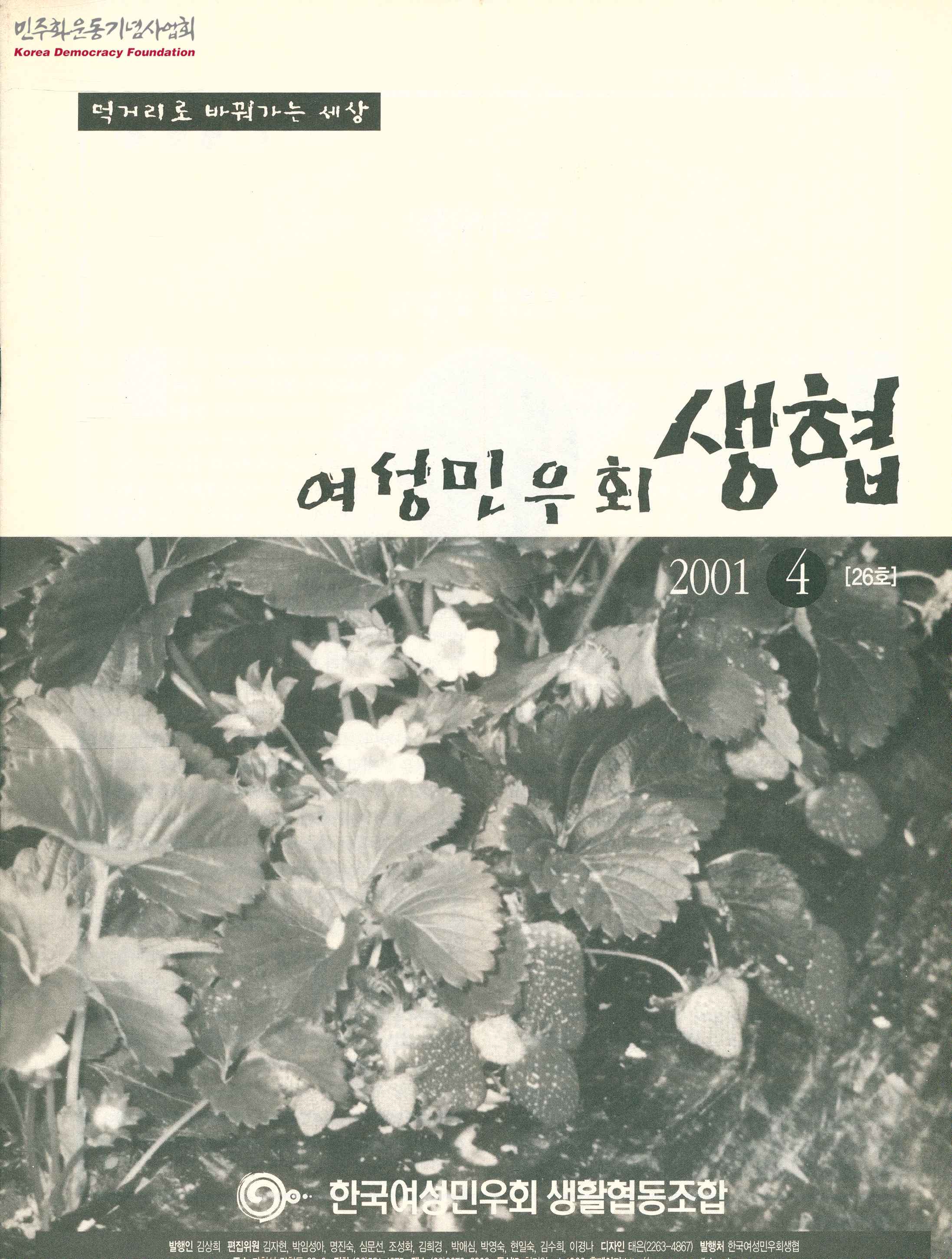 - 한국여성민우회생협에서 발행한 <여성민우회 생협> 26호로 마포지역 조합원인 선우숙임의 글 "또 다시 봄"과 생협의 3월달 이용액 현황 등이 실려 있음