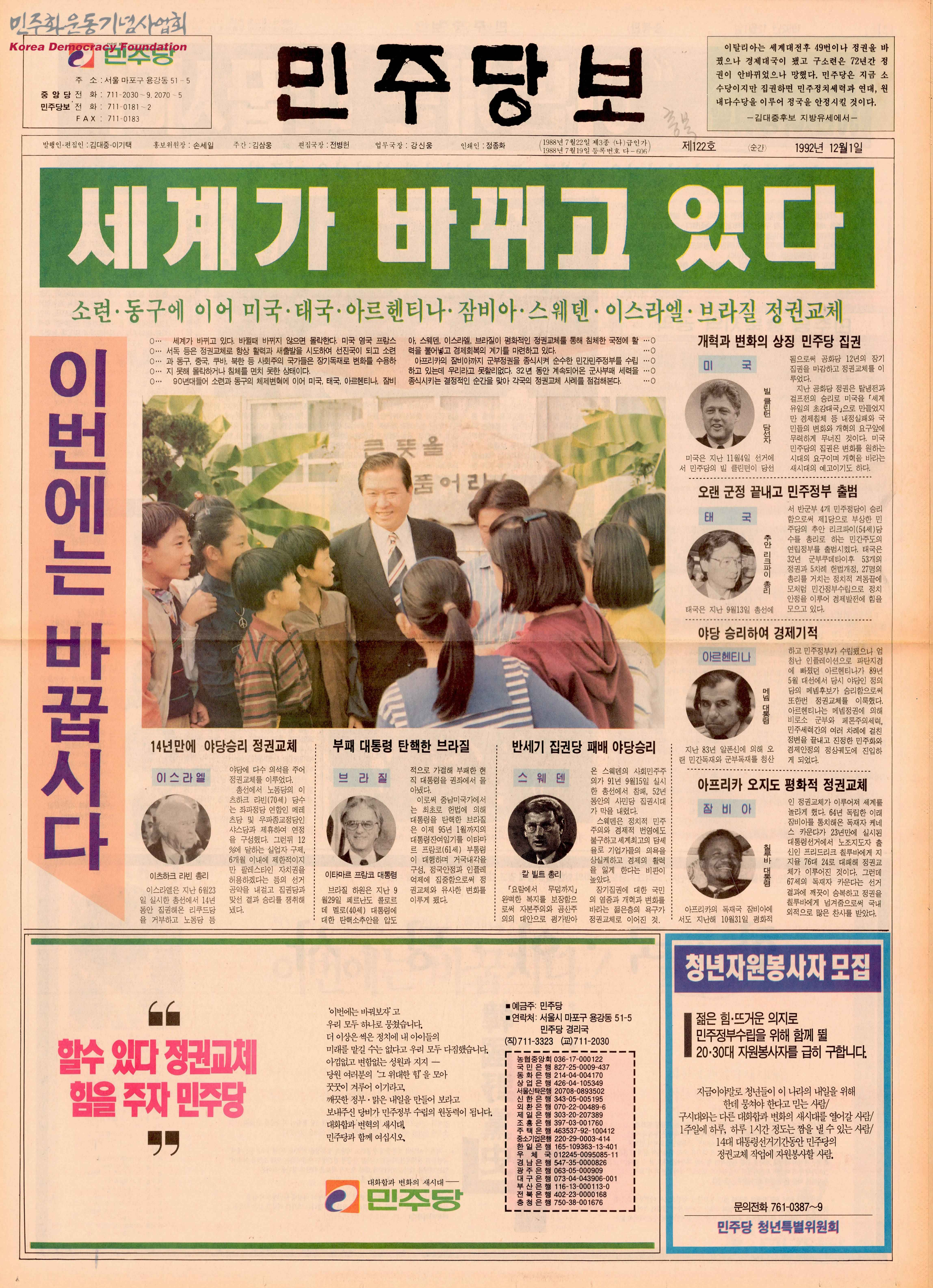 - 세계의 정권이 교체되고 있다는 글, 30년간 여당 텃밭이었던 충북을 바꿔보자는 글, 민주자유당병 10가지를 알아보자는 민주자유당 비판의 글, 김대중에 맡겨보자는 각계인사의 글 등이 수록됨